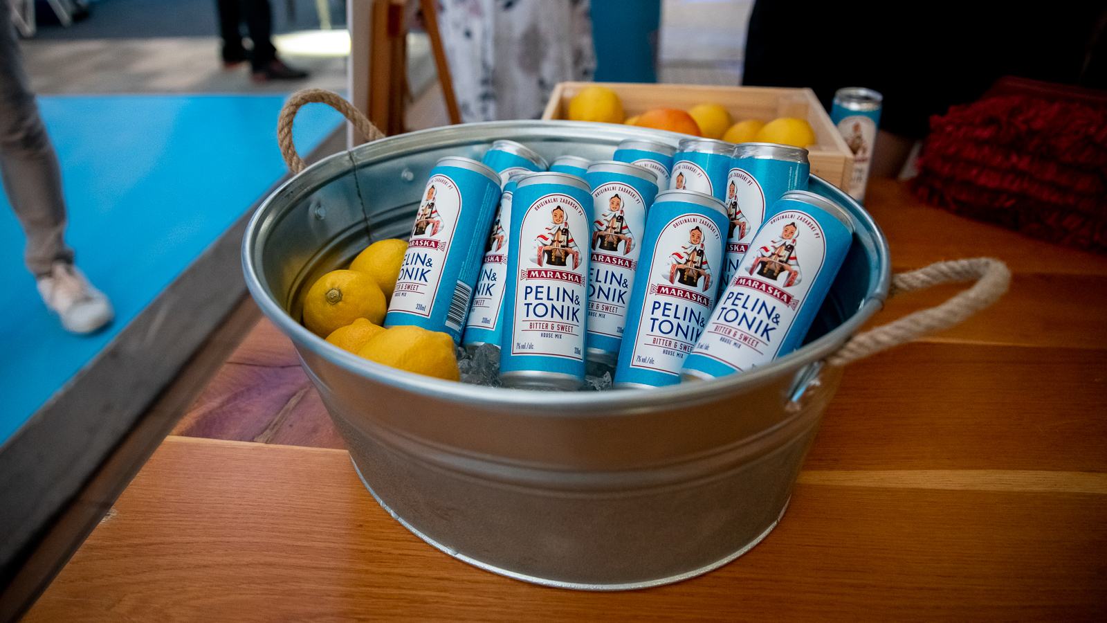 PeTe nam je stigao u zanimljvoj ambalaži – riječ je o limenci od 330 ml,  svijetlo plave boja koja neodoljivo podsjeća na more i  naravno upečatljivim Maraskinim logotipom koji uključuje i široj javnosti poznatu “babu” koja servira – što? Originalni zadarski pelinkovac!