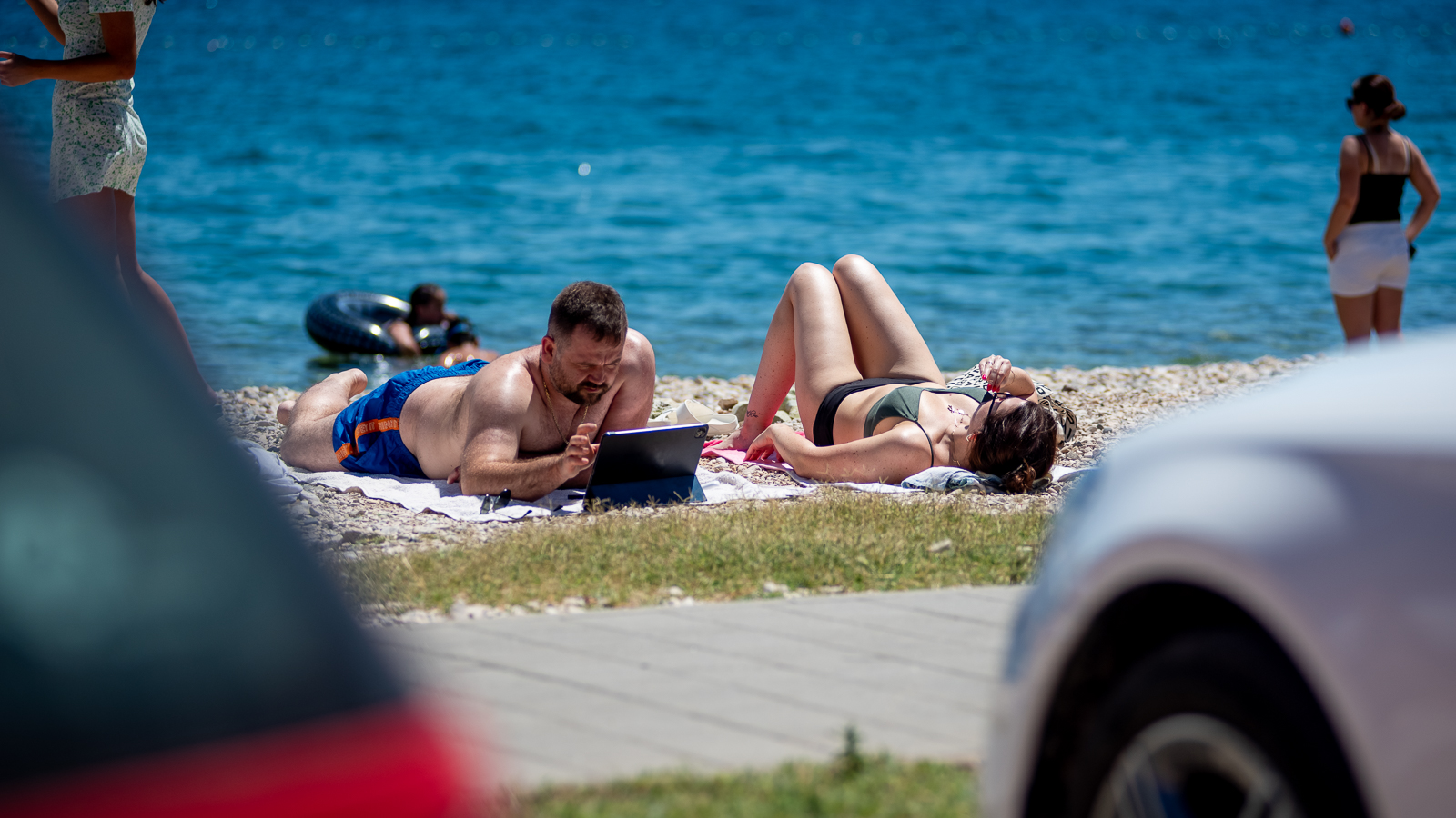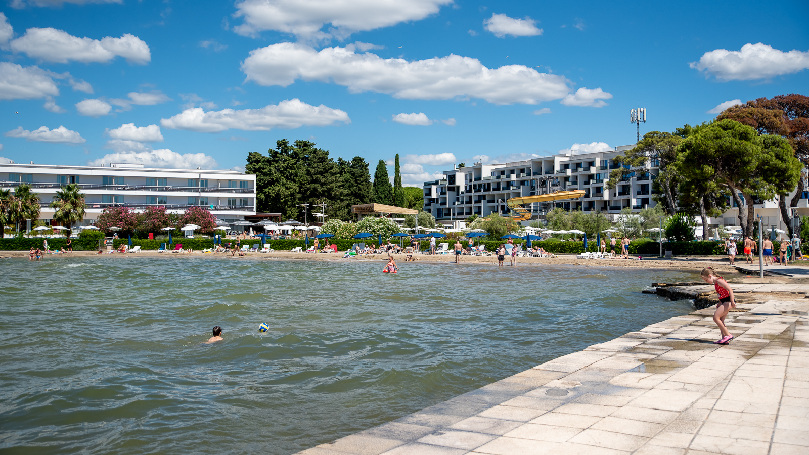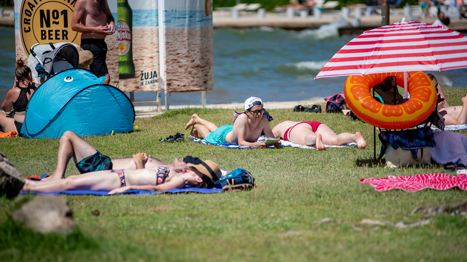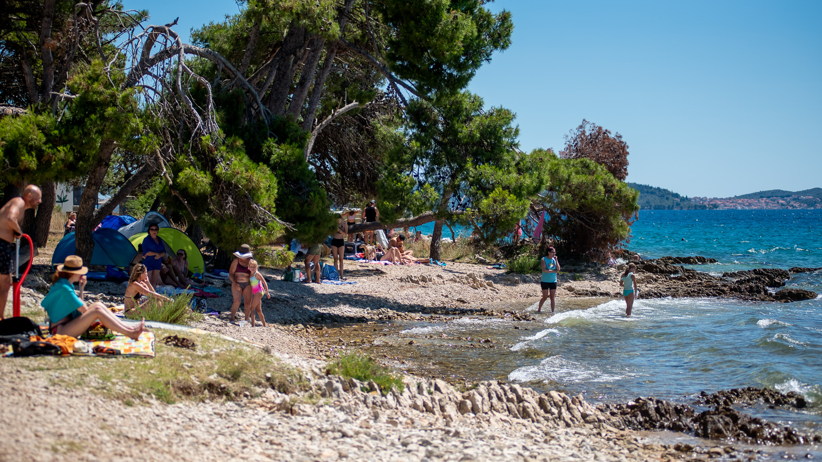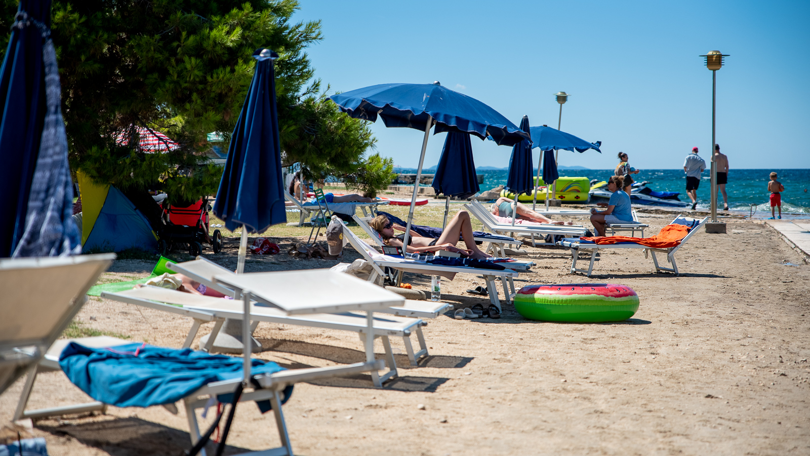 Stoga smo na plažama na Puntamici i Boriku mogli sresti velik broj kupaća kako uživaju u morskim radostima poput plivanja, sunčanja, ronjenja, a tu su naravno i ostale popratne aktivnosti kao npr. odbojka, nogotenis, knjiga, tablet, mobitel, bicikl…