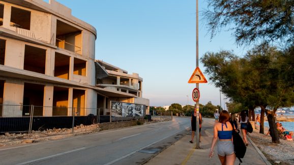 Buka, prašina, prometni znakovi čovječuljka s lopatom i građevinski strojevi mogu se vidjeti na doslovce svakom koraku u gradu, i to na najposjećenijim lokacijama poput Borika i Kolovara, koje su, unatoč tome što su to najpopularnije gradske plaže, postale kamen, zemlja i prašina.