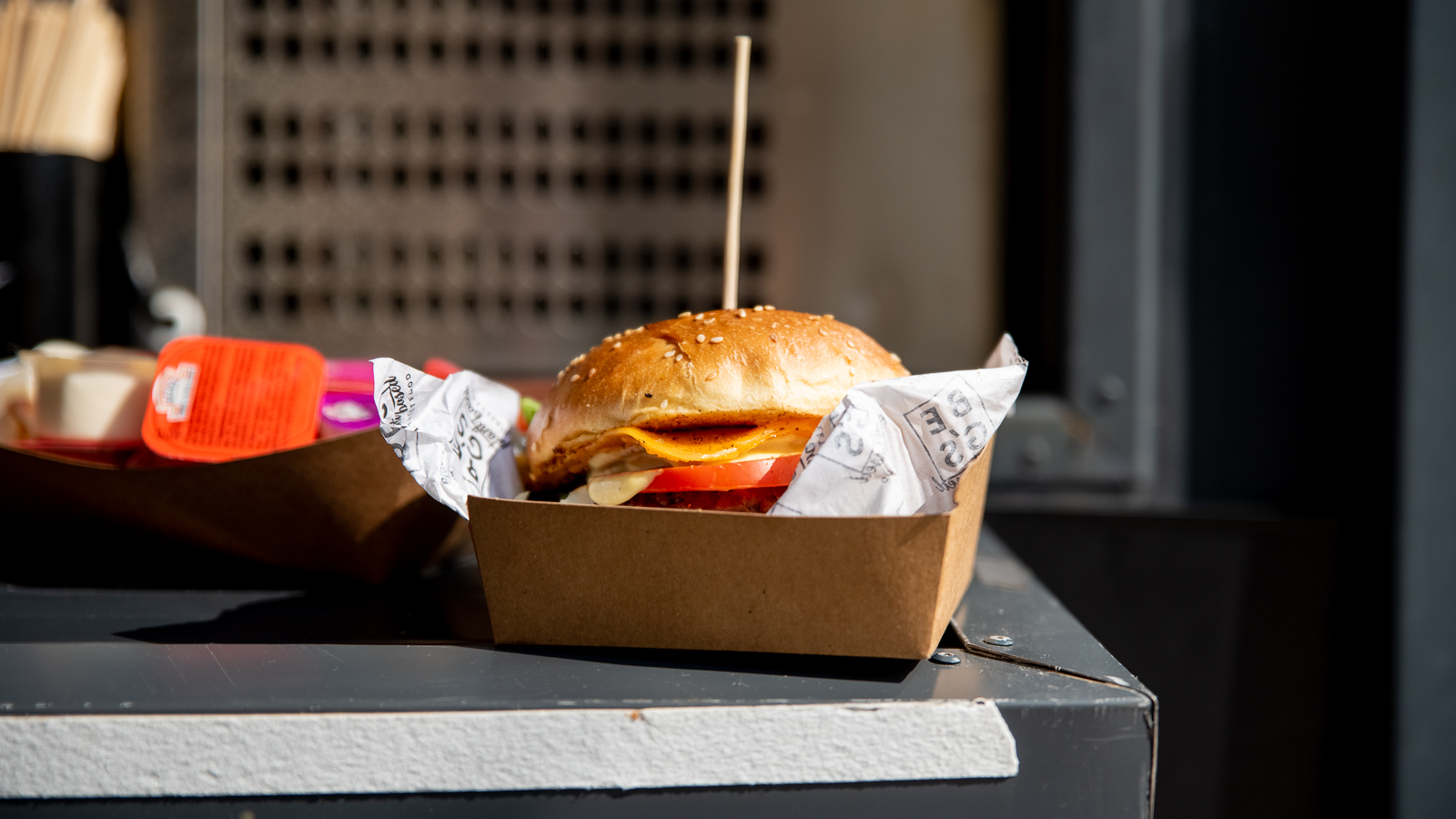 - Cheeseburger plant based pljeskavica, plant based pecivo, rajčica, domaći umak honey mustard mayo.