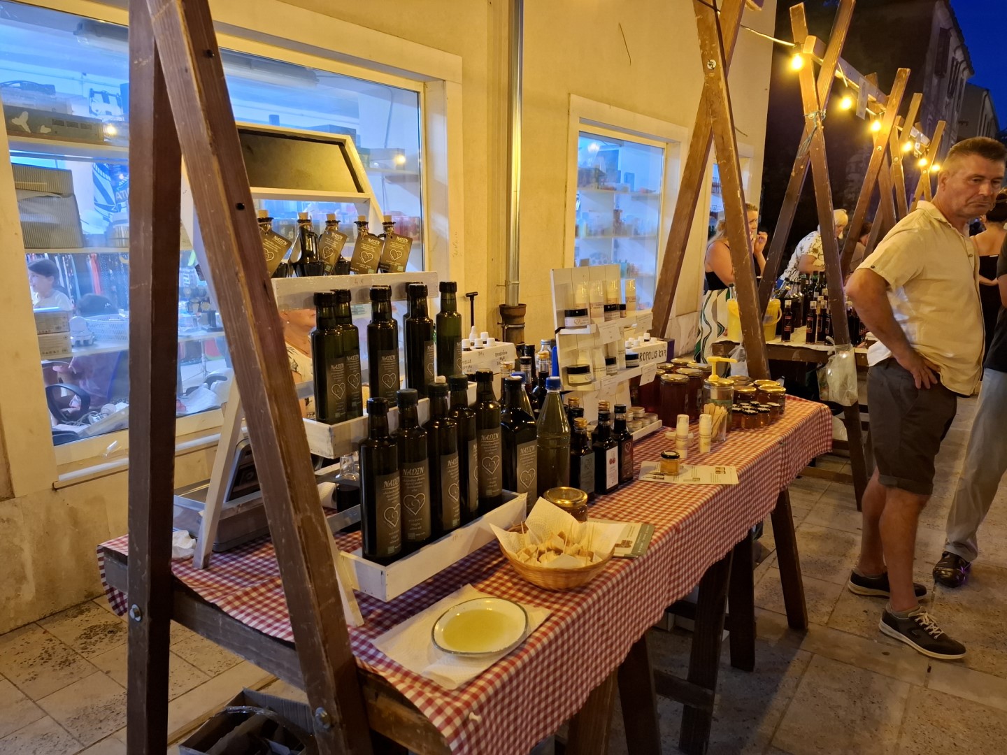 Uz mirise i okuse prisnaca koji nikoga nije ostavljao ravnodušnim, posjetitelji su mogli na lijepo ukrašenim štandovima duž gradske šetnice kušati vrhunska vina iz Ravnih kotara, domaće rakije i likere, razne sireve, fritule, med, prirodne sokove, bademe, prirodnu kozmetiku, pekmez, suhomesnate proizvode, maslinovo ulje, raznih originalnih i unikatnih predmeta ručne izrade što najbolje govori o vrijednim ljudima benkovačkog kraja.