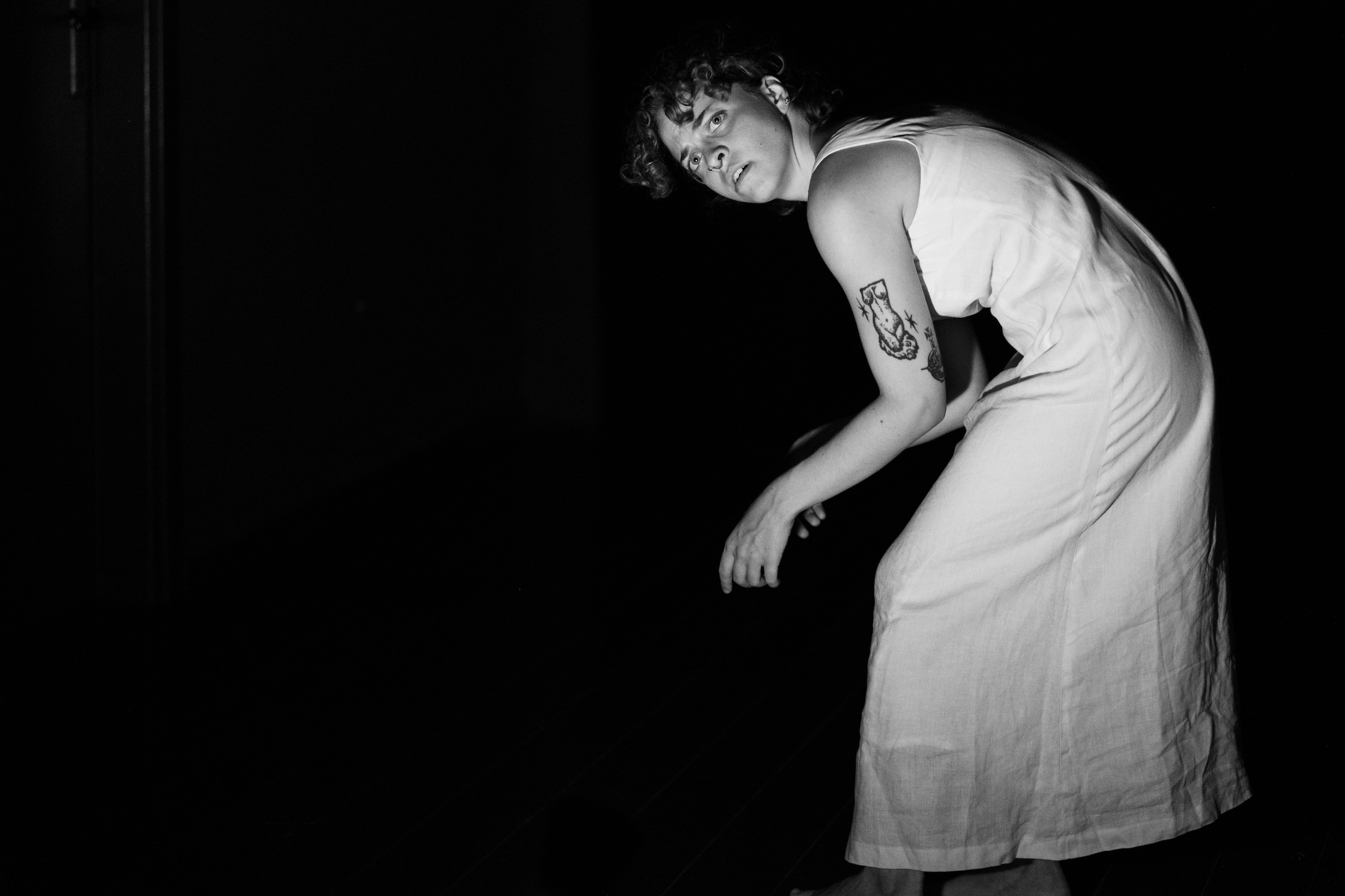 Drugi rad autorice Isabele Eve Ljubičić Kako da budem tu ako znam da ću nestati donosi temu zarobljenosti u stanju između  konstantne brige, straha od budućnosti i smrti, te vraćanjem u prošlost kroz nostalgiju za djetinjstvom, za početkom. Vrlo sugestivno i koncentrirano ovu kratku plesnu formu izvela je Lea Filipčić.