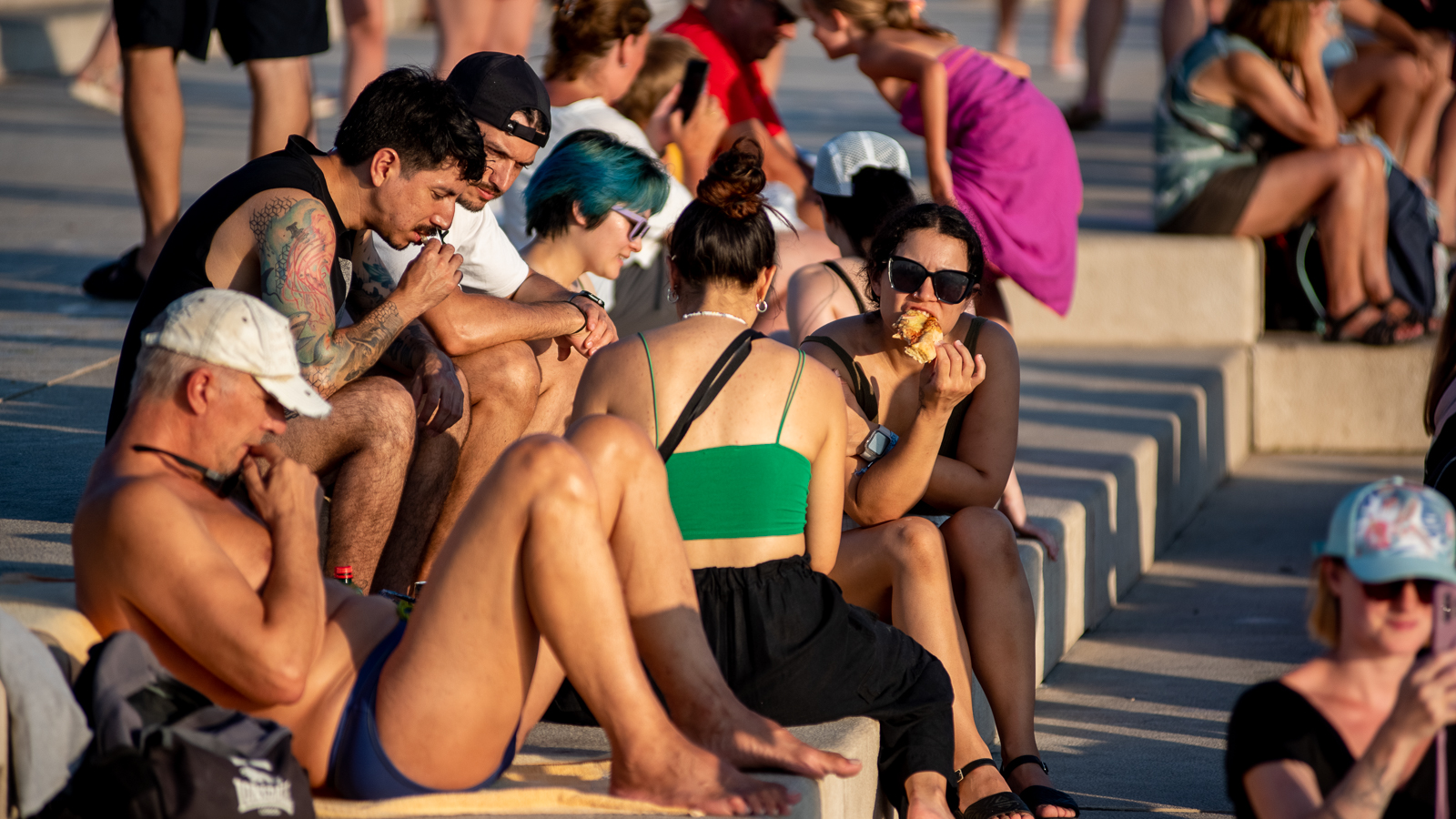 Kolovoz polako dolazi svom kraju, pa su mnogi domaći i turisti uhvatili priliku da prošetaju, popiju kavu dok ih prži ljetno sunce, okupaju se u moru ili pak odigraju koju partiju odbojke na Pozdravu Suncu.
