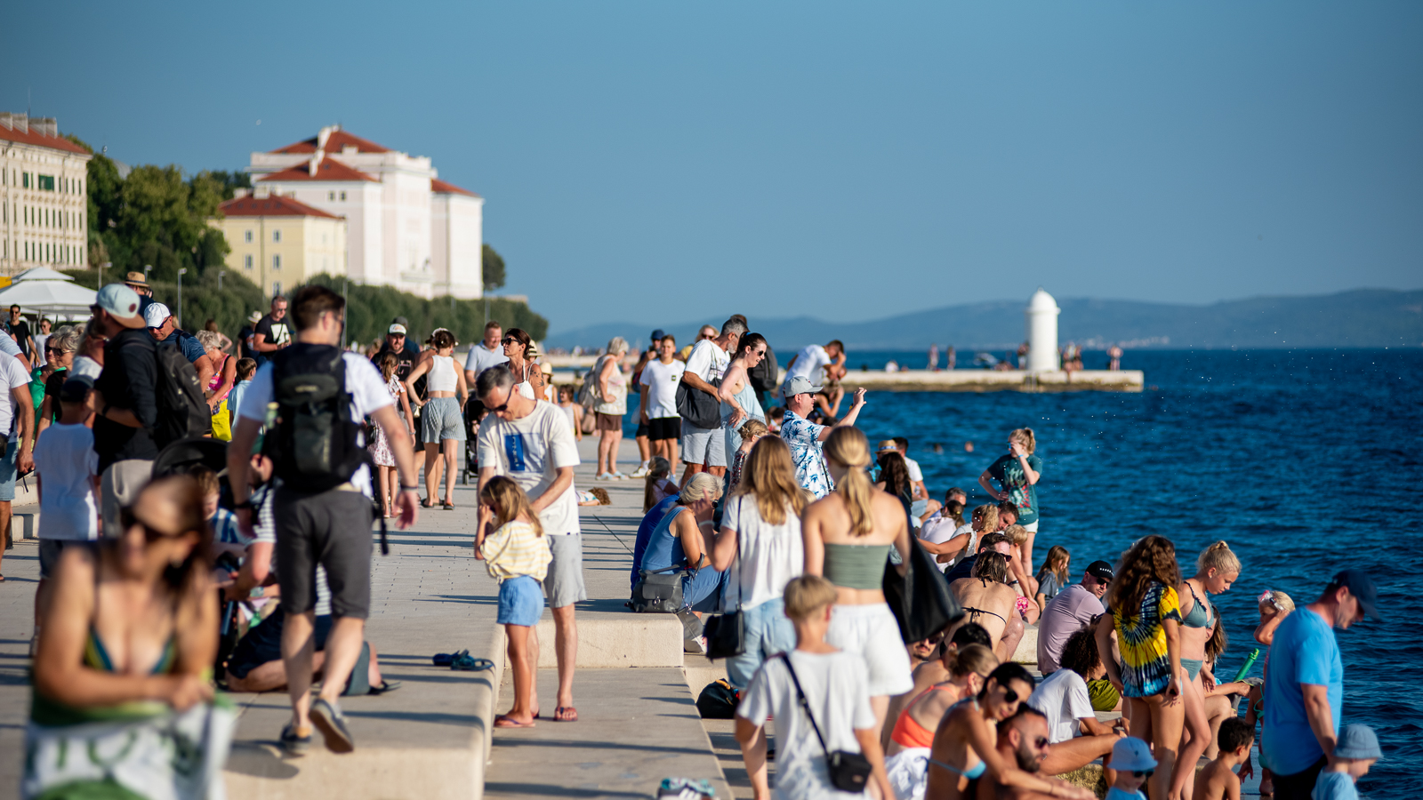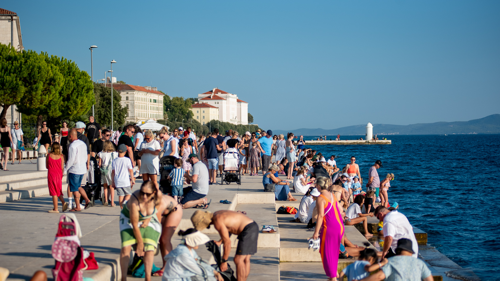 Sunčano popodne, brojni su Zadrani i njihovi gosti odlučili provesti u điru rivom i gradskim ulicama, kako bi, diveći se ljepotama grada, upili pokoju zraku Sunca.