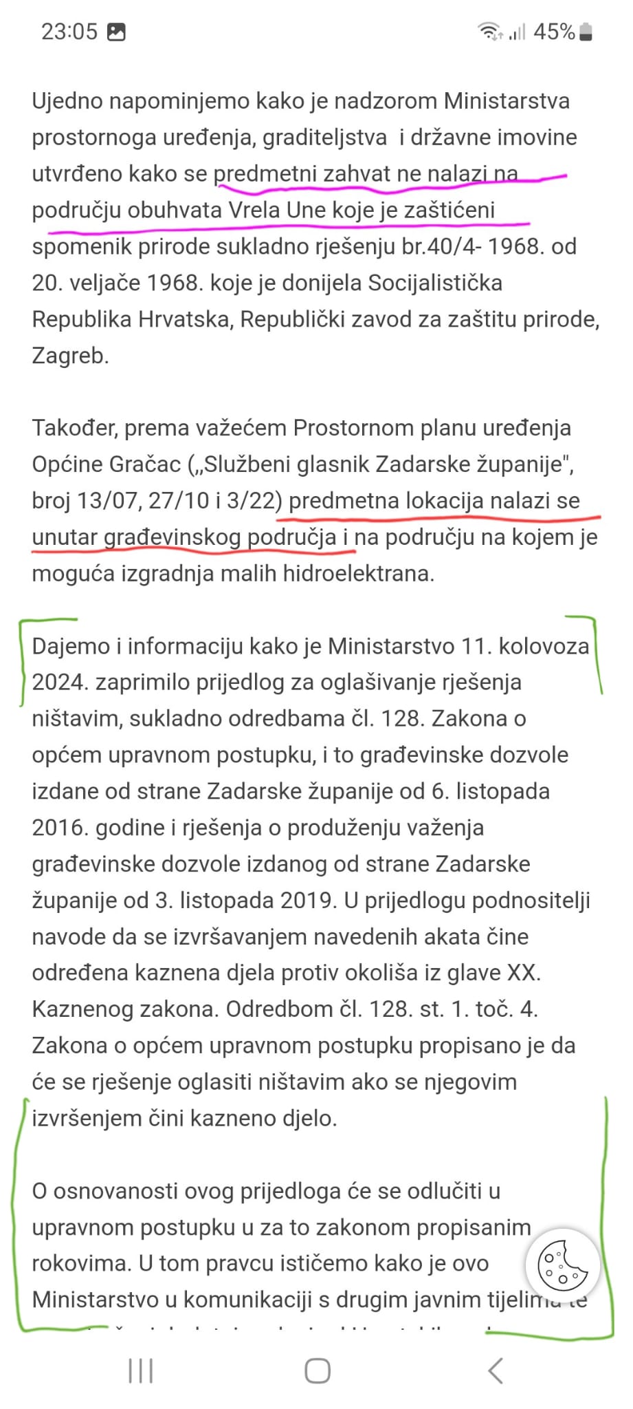 11. kolovoza 2024. Udruga Una podnijela je prijedlog za oglašavanje građevinske dozvole i rješenja kojim se produžuje važenje iste ništavim, jer se izvršavanjem tih akata čine kaznena djela protiv okoliša.