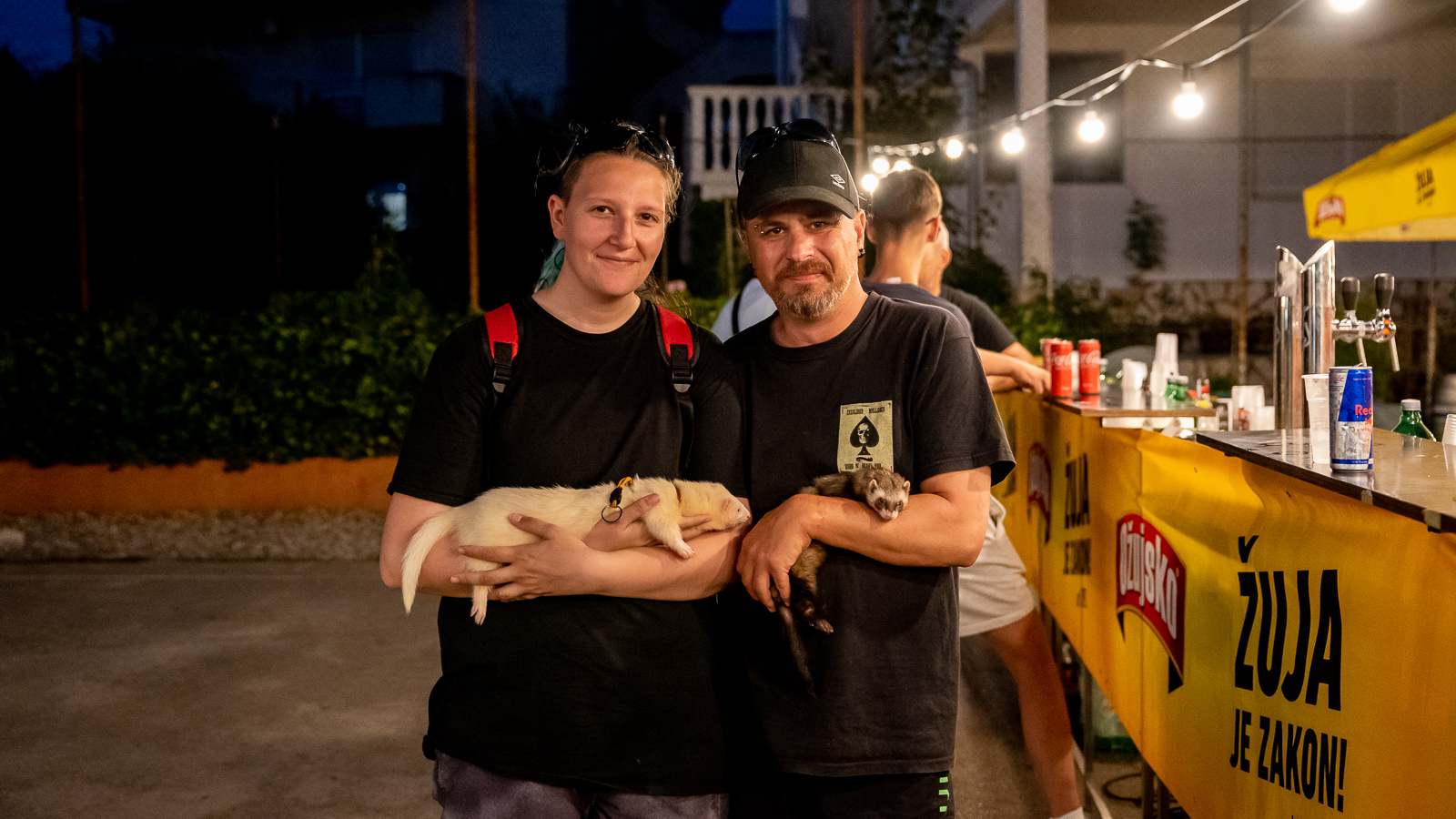 Posjetitelja je zaista i bilo mnogo, a u điru feštom sreli smo Sutiju i Chrissu sa svojim zanimljivim čupavim prijateljima – dvjema feretkama Nalom i Rockijem.