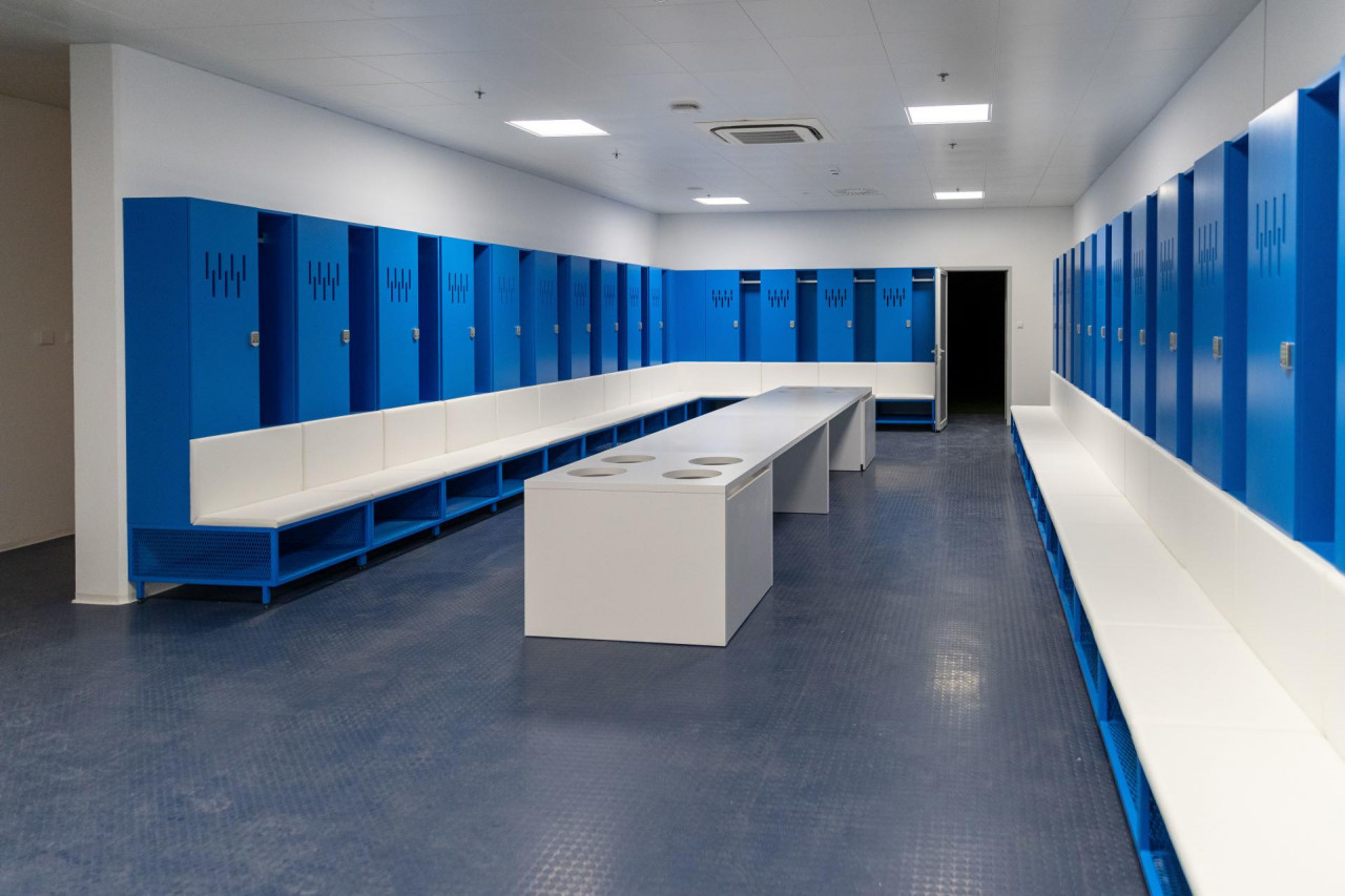 Napravili smo nekoliko fotografija kontejnera koji će glumiti svlačionice. Među slikama jest i jedna ultra moderna svlačionica s Opus Arene. Pa usporedite..