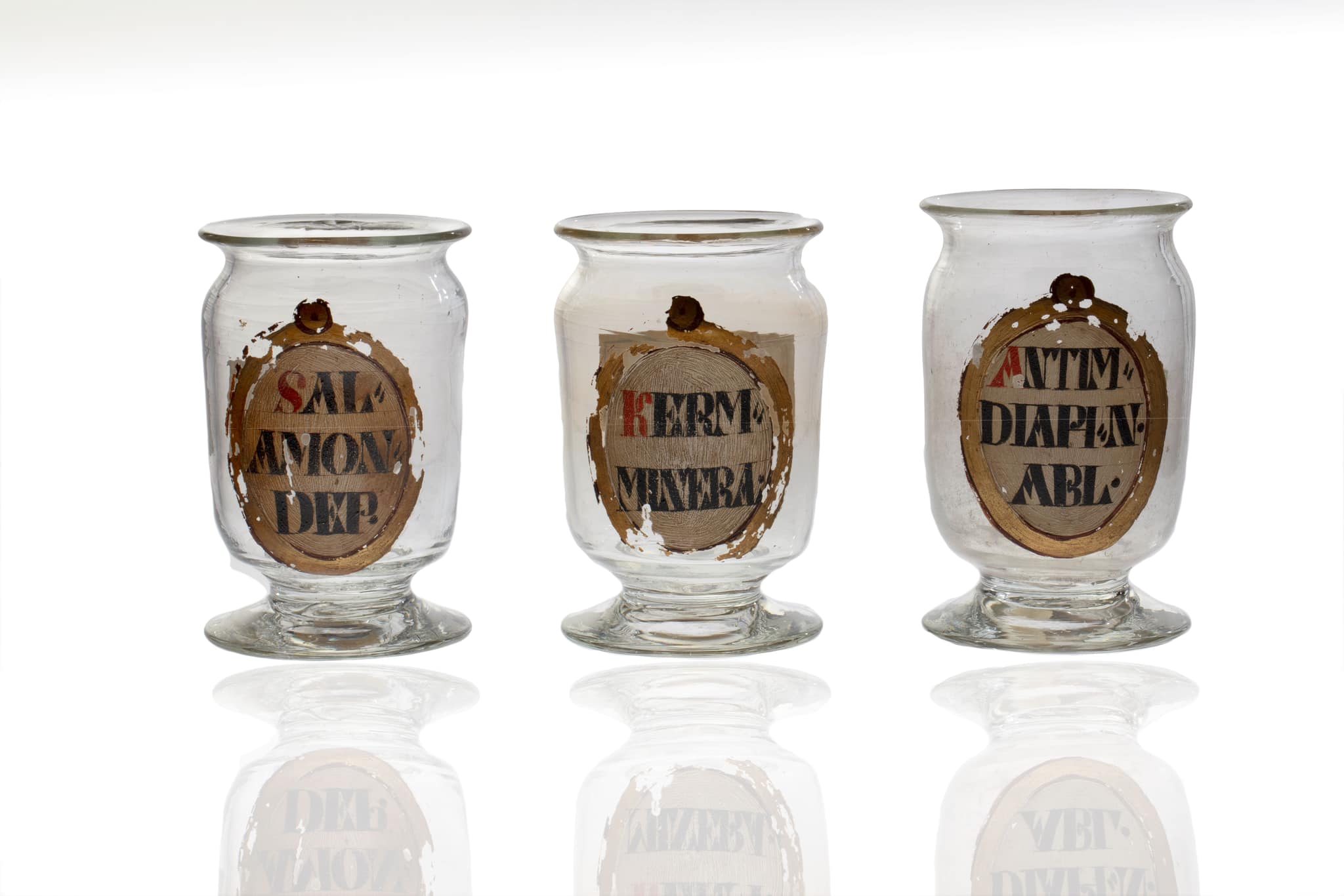 Osim uporabne vrijednosti mnogi predmeti sadrže stilske elemente vremena u kojima su izrađivani, što se prepoznaje u odabiru stakla i oblikovanju formi, kao i u načinu izrade raskošno dekoriranih natpisnih polja, simbola sadržanih elemenata, sirovina, gotovih pripravaka…Velik broj izloženih predmeta sadrži tragove, a ponegdje i veće količine izvornog sadržaja, što posebno doprinosi prezentaciji njihove autentične praktične primjene.