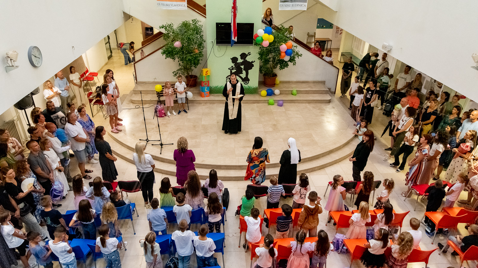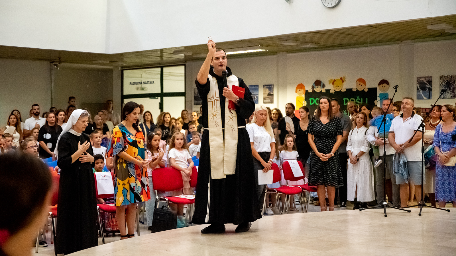Svi prisutni, od roditelja do učitelja, svjesni su važnosti ovog trenutka. Učenici i učiteljice pripremili su radosnu dobrodošlicu koja je uključivala pozdravne govore, nastup zbora, recitaciju i prigodne pjesme. Priredbi se pridružio i Fra Bojan Rizvan iz župe Presvetog Srca Isusova, koji im je udijelio koju mudru riječ i s prisutnima se pomolio za najmlađe. Cijeli događaj je bio u cilju kako bi se mališanima olakšao prelazak u novu i nepoznatu fazu života te da se osjećaju dobrodošlo zbog početka novog obrazovnog poglavlja.