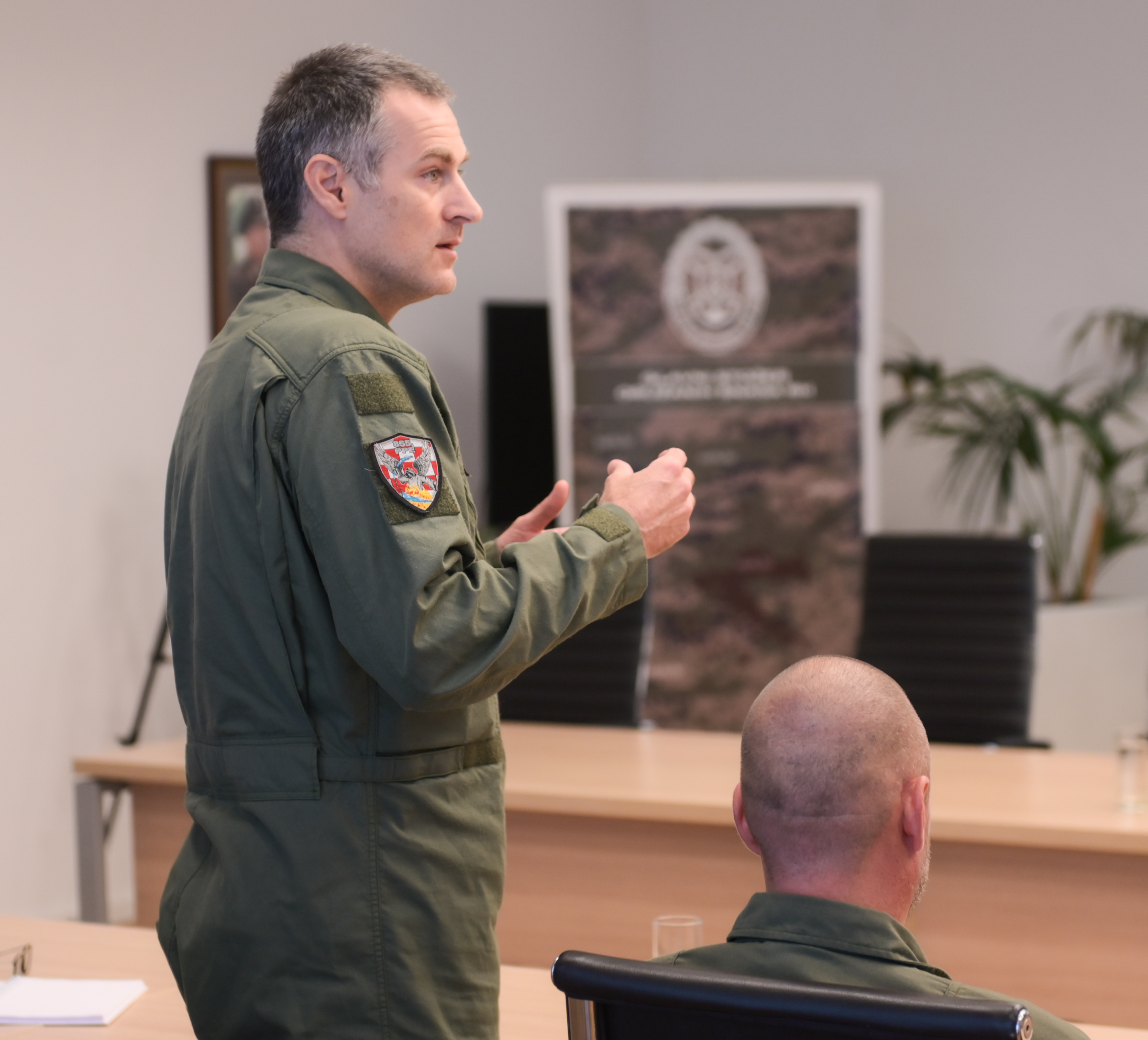 Zapovjednik 855. protupožarne eskadrile pukovnik Darko Kučej izrazio je zadovoljstvo susretom s ministrom i načelnikom te iznio rezime angažmana ovogodišnje sezone. Istaknuo je: “Ovo je, statistički gledano, bila prosječna sezona. Međutim, bilo je izazova, što se tiče velikih požara koji su trajali nekoliko dana i prelazili u noć. Od velikih požara istaknuo bih onaj u Žrnovnici, koji je prešao iz kontroliranog stanja u požar velike eskalacije te u jednom trenutku ugrozio i stanovništvo i raketnu bazu. Zbog vjetra i velikih promjena samo letenje bilo je vrlo izazovno i puno turbulencija.”