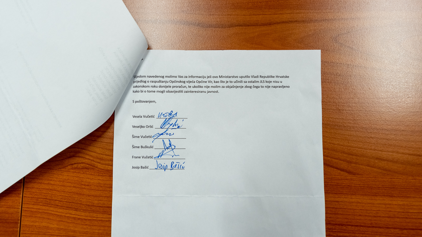 – Tema je raspuštanje Općinskog Vijeća, odnosno situacija da, usprkos tome što nemamo donesen proračun u zakonskom roku, nemamo ni raspušteno Općinsko vijeće, kao ni raspisane lokalne izbore. Obzirom da je bilo nekoliko drugih jedinica lokalne samouprave koje su imale istu ili sličnu situaciju, a uspjele su riješiti postojeće probleme, normalno funkcioniraju i donose odluke, činjenica je kako još jedino Općina Vir nema raspušteno vijeće. Štoviše, oni sad u ovome trenutku održavaju sjednicu Općinskog vijeća te donose odluke. Mi smatramo da je to skandalozno i asposlutno protuzakonito, kazao je vijećnik Bašić.