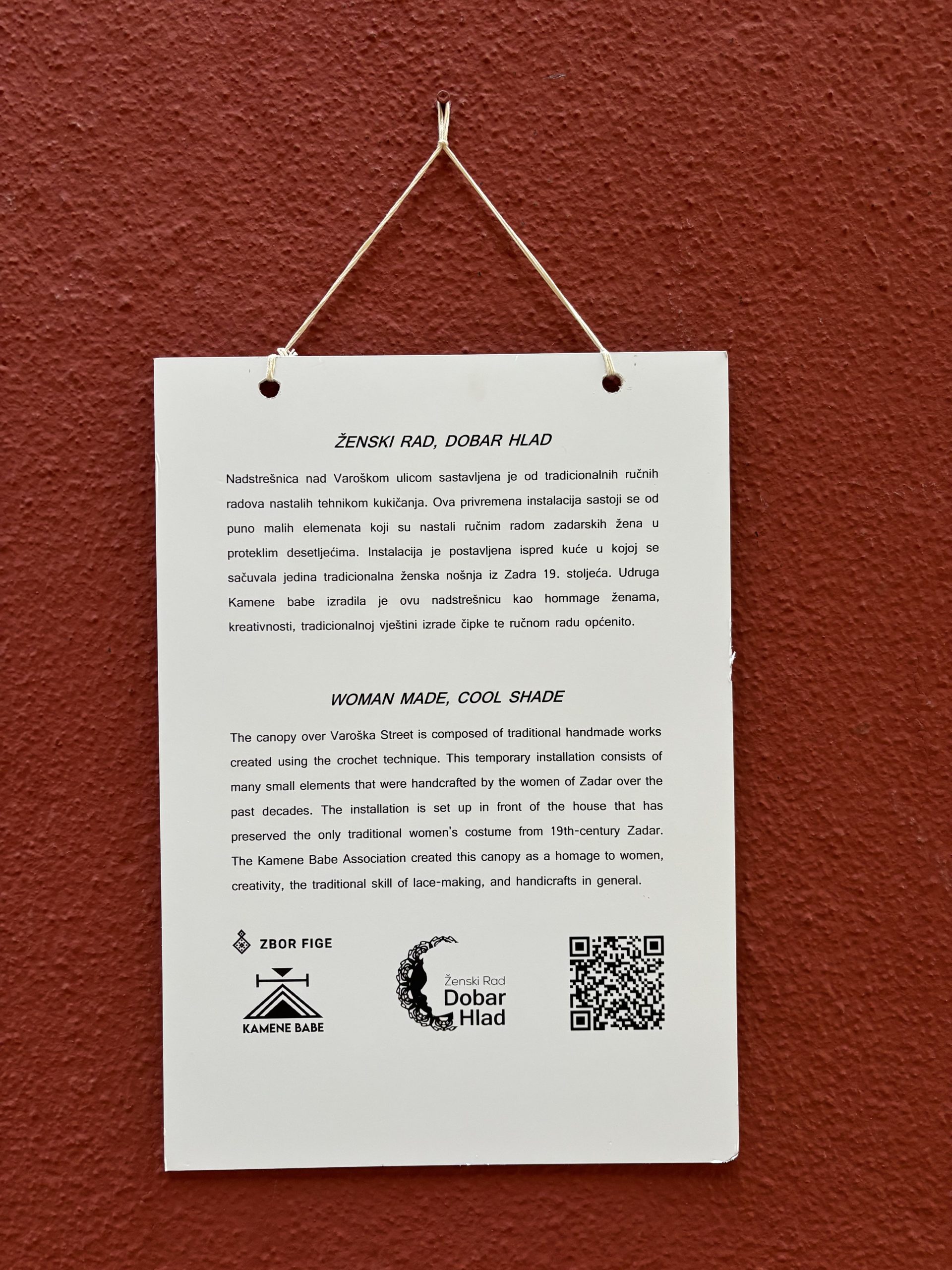 Ženski rad, dobar hlad je projekt kojeg su u ljeto 2023. godine pokrenule Tijana Mihailović, Maja Šintić Šibenska udruga mladih. Radilo se o šivanju i postavljanju pokrova, odnosno sjenila, i to zahvaljujući donacijama ženskih ručnih radova, čipkastih stolnjaka, prekrivača i miljea (tabletića). Etnologinja Sandra Barešin za tu je svrhu napisala kako je projekt svojevrsna pohvala ruci i važnosti uloge ruke u kulturnoj povijesti čovječanstva na razmeđi primijenjene umjetnosti, ručnog rada i ekologije.
