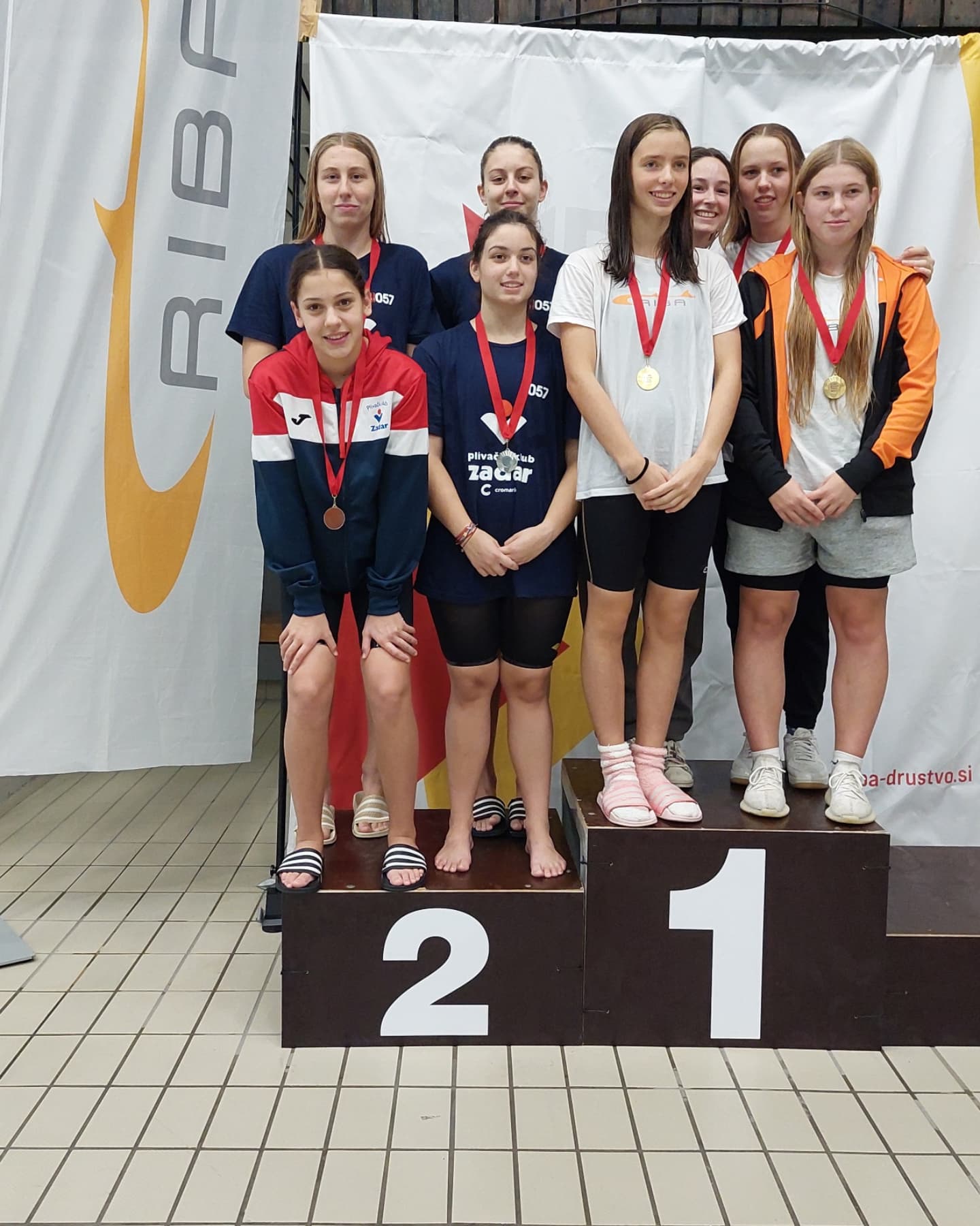 Odlične rezultate i plasmane Klub je zabilježio i u štafetnim nastupima. Štafeta 4x50m slobodno (kat. A+B) u sastavu: Danica Sorić, Andrea Uhoda, Karla Sorić, Mareta Mikulić osvojila je srebrnu medalju s vremenom (1:59.86). Mlađa štafeta (kat. C+D) u sastavu: Zrna Šijaković, Ana Knežević, Laura Župan, Mia Zekanović osvojila je bončanu medalju u istoj disciplini (2:00.26).