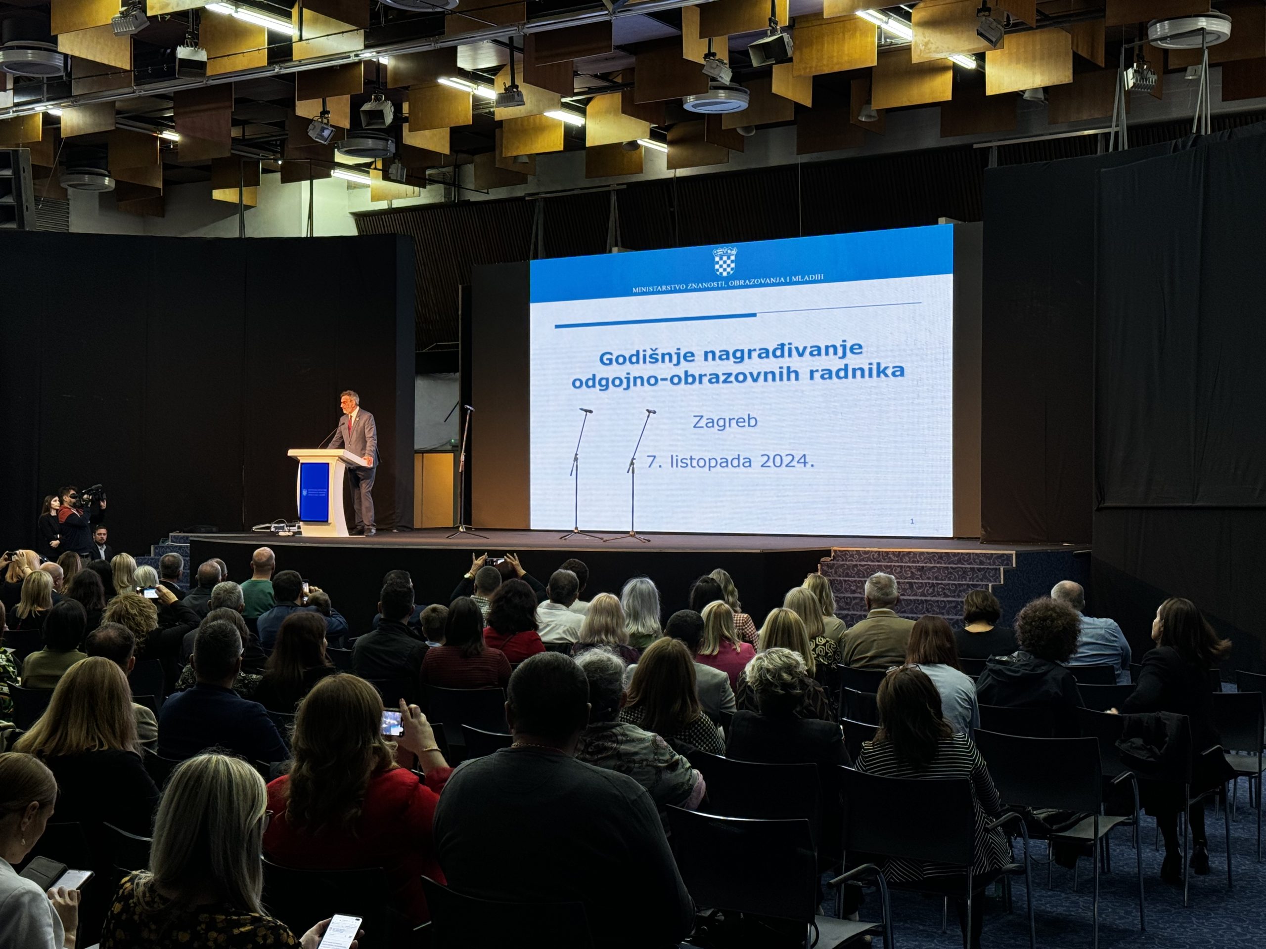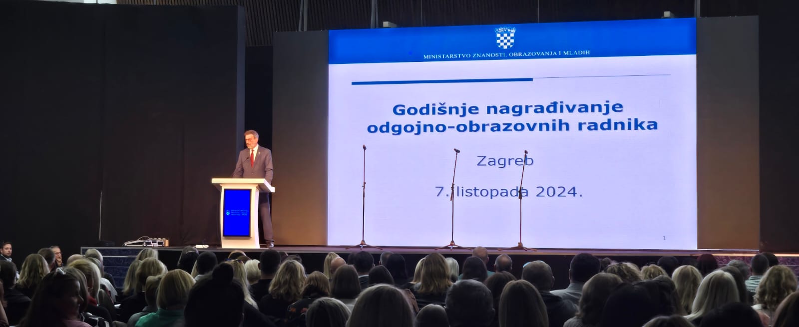 Na temelju Pravilnika o nagrađivanju učitelja, nastavnika, stručnih suradnika i ravnatelja u osnovnim i srednjim školama te učeničkim domovima (NN, br. 53/2019.) i ove je godine povodom Dana učitelja Ministarstvo znanosti i obrazovanja nagradilo 513 najboljih odgojno-obrazovnih djelatnika u Hrvatskoj za 2023./2024. školsku godinu. Danas, u ponedjeljak, 7. listopada 2024. godine u Kongresnoj dvorani Zagrebačkog velesajma održana je svečana dodjela nagrada. Ministar prof. dr. sc. Radovan Fuchs, točno u podne, čestitao je nagrađenima te uputio poruku povodom Svjetskog dana učitelja.