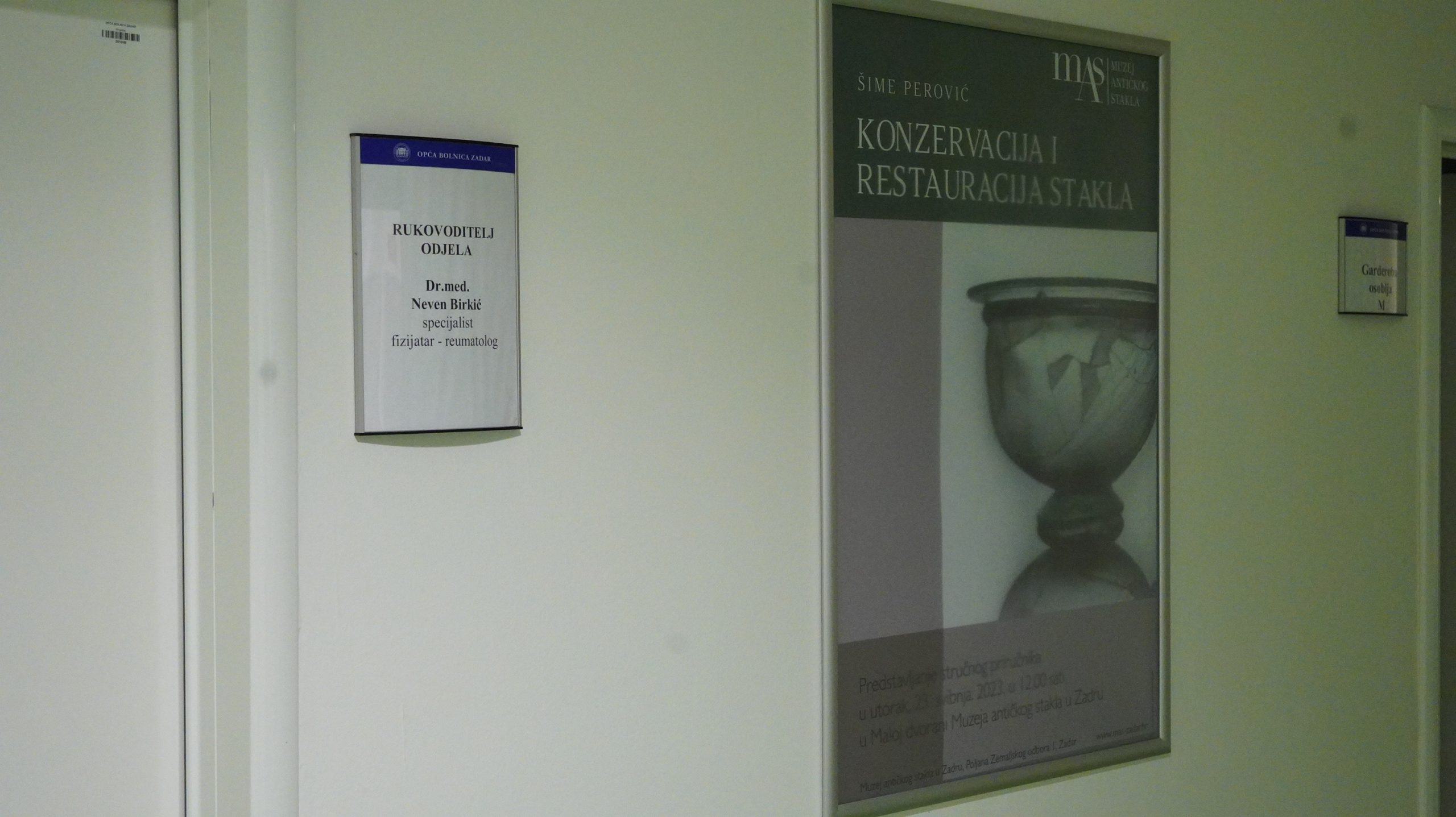 Neobičan susret, već godinama, događa se na Odjelu za fizikalnu medicinu, rehabilitaciju i reumatologiju Poliklinike Opće bolnice Zadar. Na pomalo neočekivanom mjestu, ovdje se susreću i spajaju zdravstvo i kultura! Sve je započelo još 2019.godine kada je Muzej antičkog stakla, uz obilježavanje 10 godina od otvorenja te povodom Dana grada Zadra i blagdana sv. Krševana, našoj ustanovi donirao plakate muzejskih izložbi i ostalih događanja. Oni su oplemenili ambulante, čekaonice, vježbaonice i dvorane za provođenje terapija na Odjelu za fizikalnu medicinu, rehabilitaciju i reumatologiju Poliklinike Opće bolnice Zadar.