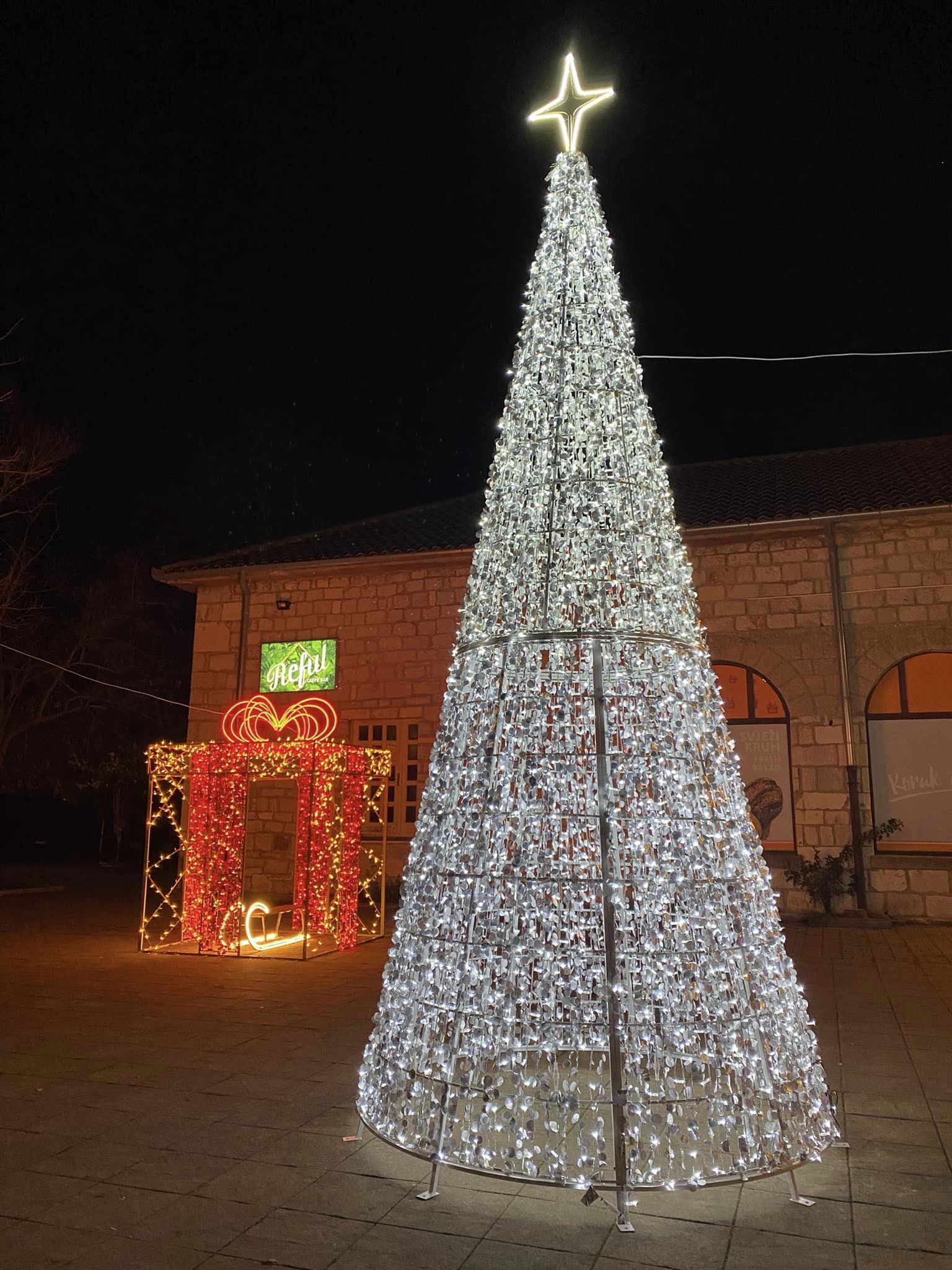 Tu su, tako, veliki božićni dar, jelen i saonice, ali i velika kugla za bor koja označava ulaz na trg, dok nove lampice u parku donose poseban blagdanski ugođaj.