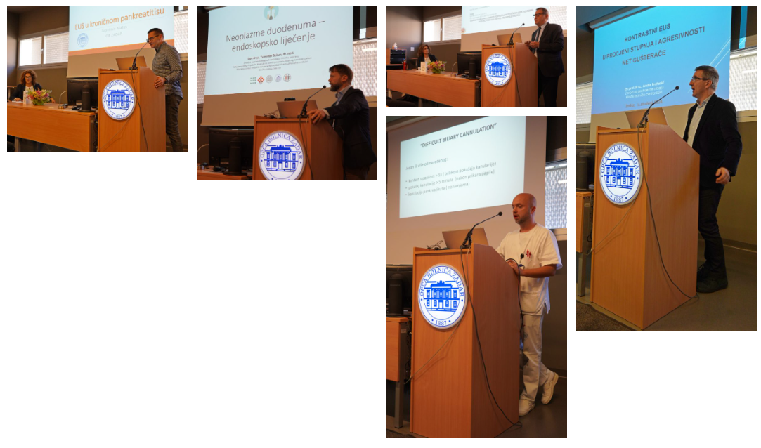 Prof.dr.sc.Rusimir Mesihović, gastroenterolog iz Slovenije, govorio je o dosezima i zamkama endoskopskog ultrazvuka dok je prof.dr.sc. Andre Bratanić, gastroenterolog iz KBC Split, iznio mogućnosti dijagnosticiranja neuroendokrinih tumora gušterače uz pomoć kontrastnog EUS-a. Opću bolnicu Zadar predstavljali su dr. Zvonimir Matas, gastroenterolog, koji je prikazao važnost praćenja i dijagnoze kronične upale gušterače uz pomoć EUS-a, dok je doc.prim.dr.sc.Melanija Ražov Radas, dr.med, prikazala nove metode zbrinjavanja proširenih krvnih žila želuca uz pomoć EUS-a.