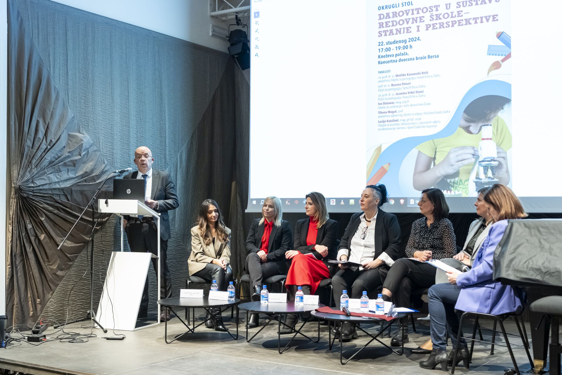 U povodu obilježavanja Dana grada Zadra Odjel za pedagogiju Sveučilišta u Zadru u Kneževoj palači održao je okrugli stol „Darovitost u sustavu redovne škole – stanje i perspektive”. O darovitoj djeci i izazovima u otkrivanju i realizaciji njihovih punih potencijala govorili su pročelnica Odjela za pedagogiju izv. prof. dr. sc. Matilda Karamatić Brčić, prof. dr. sc. Rozana Petani i izv. prof. dr. sc. Jasmina Vrkić Dimić s Odjela za pedagogiju, pročelnica Upravnog odjela za odgoj i školstvo Grada Zadra Tihana Magaš, Iva Slačanac iz Centra za uočavanje i rad s darovitima Zadar te Lucija Katalinić iz Odsjeka za kvalitetu obrazovanja u Upravnom odjelu za obrazovanje, kulturu i šport Zadarske županije, uime Sveučilišta u Zadru, rektora prof. dr. sc. Josipa Faričića i uprave, sudionike je pozdravio prorektor prof. dr. sc. Zvjezdan Penezić.