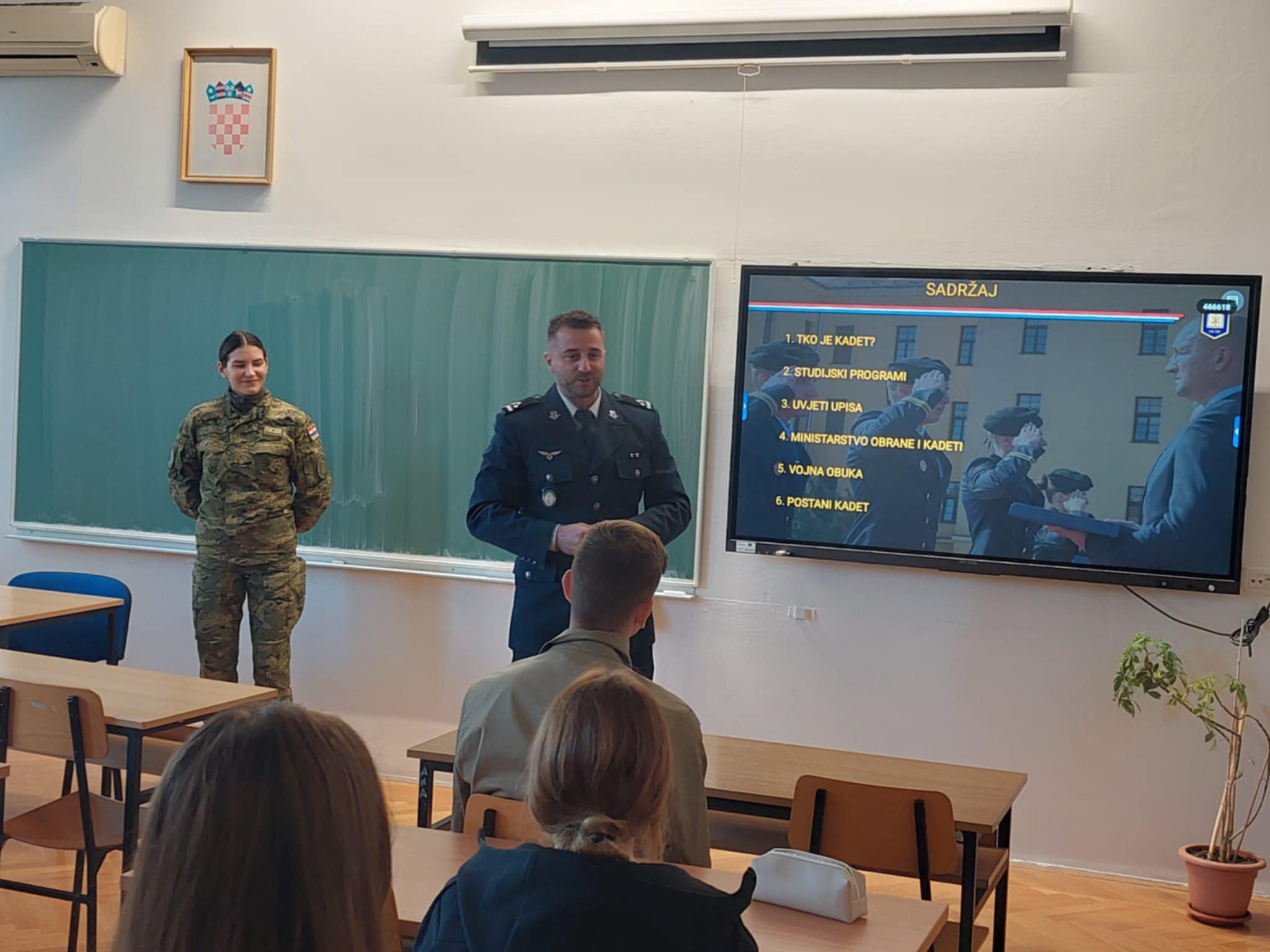 Također, učenicima je predstavljeno što Ministarstvo obrane RH kadetima osigurava tijekom studija. Primjerice, studenti dobivaju mjesečnu stipendiju, osiguran smještaj i prehranu, udžbenike i drugo. Vjerujemo da je učenicima ovo predstavljanje bilo zanimljivo i možda smo nekoga od njih potaknuli da za svoje buduće zanimanje, izabere upravo neki od predstavljenih studija.