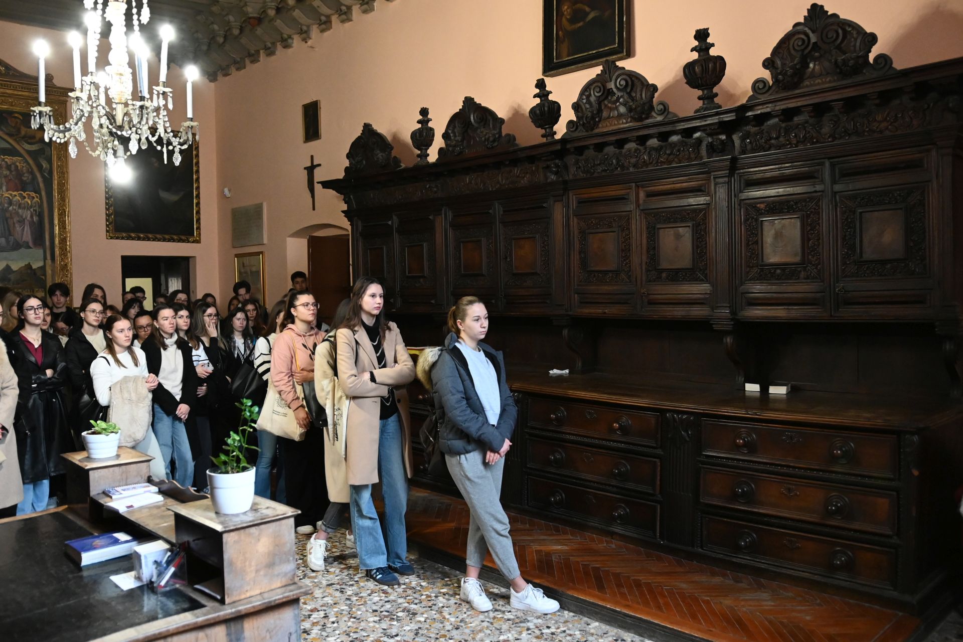 Program je započeo u samostanu sv. Frane predavanjem „Krojenje povijesti u sakristiji Sv. Frane: Zadarski mir 1358.” Studentice povijesti Antonela Mršić, Anamarija Pavičić i Darija Miletić okupljenima su o ovom važnom sporazumu iz zadarske i hrvatske povijesti govorili baš u prostoru u kojemu je 18. veljače 1358. sklopljen i kojim se Mletačka Republika morala odreći svojih posjeda u Dalmaciji. Predavanje je sa zanimanjem pratio i gvardijan franjevačkog samostana sv. Frane u Zadru fra Stipe Nosić, koji ih je pozvao da razgledaju samostanski muzej, uključujući i ophodni križ koji se gradom nosio nakon potpisivanja Zadarskog mira.