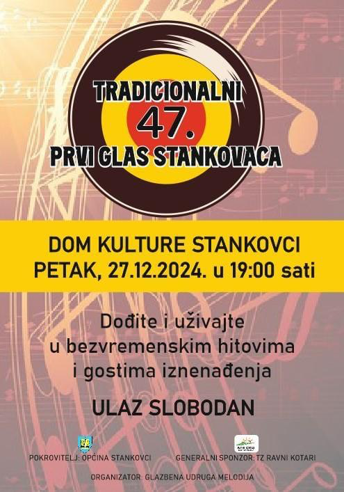 Pokrovitelj je Općina Stankovci, generalni sponzor: TZ Ravni kotari, organizator: Glazbena udruga Melodija.