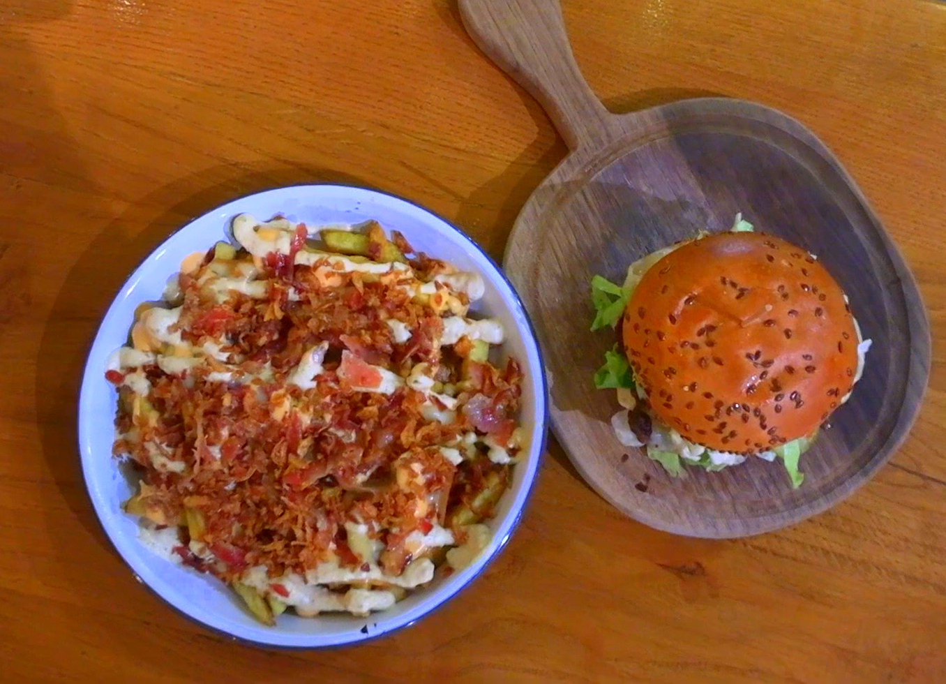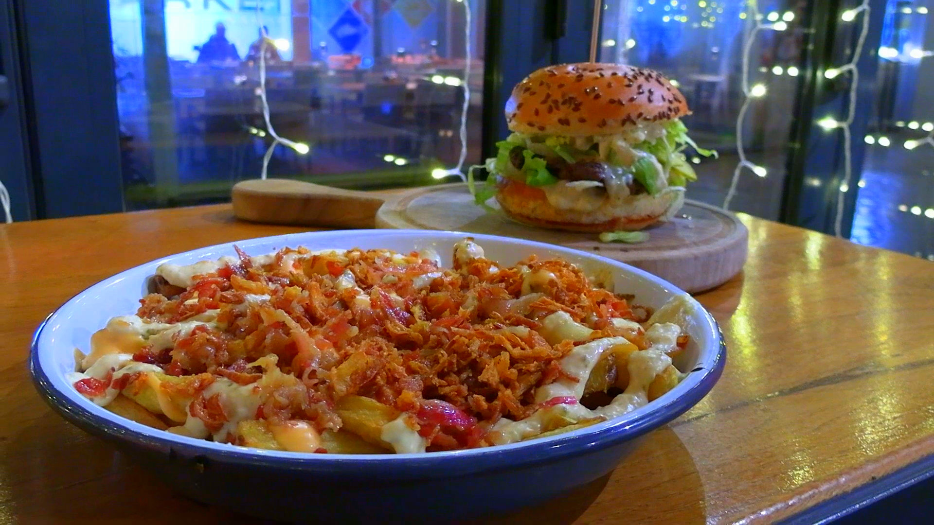 Domaći krumpirići s komadićima dimljene pancete i prženog luka, te grilanog dimljenog sira s BBQ mayo i Special Submarine umakom nikoga neće ostaviti ravnodušnim! A upravo u kombinaciji s winter burgerom gastronomski užitak postaje jedna sasvim nova dimenzija okusa.