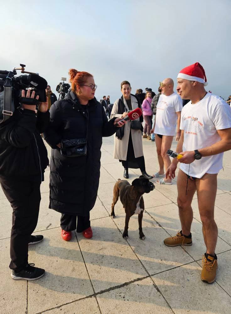 Nema prepreka, ali nema niti boljeg početka Nove od hrabrog skoka u more, složilo se pedesetak – ‘ma, reka’ bi i šezdesetak’- okupljenih kupača na Morskim orguljama. Naravno, i kupačica, koji su 2025. godinu započeli novogodišnjim kupanjem, u devetom po redu skoku u akvatorij ‘prvog zimskog dana’ nastupilog ‘ljeta’. U veselju i pozitivnoj atmosferi, svi su se bacili u hladne morske valove, odvažni i spremni na izazove koji ih čekaju u nadolazećim tjednima i mjesecima. I da, kao definitivna potvrda kako je zimsko kupanje postalo pravi ritual za sve one koji žele dočekati godinu s osmijehom i hrabrošću, a među njima su, osim domaćih, i turisti – poput Mađara Olivera- koji su se zatekli u Zadru- ‘i doće opet, dogodine, zarazili smo ih entuzijazmom i atmosferom, osmijehom i hrabrošću, neka, neka…’..