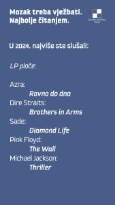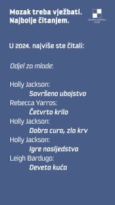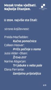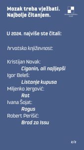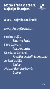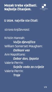 Iz GKZD-a donjeli su nam pregled najčitanijih naslova u svojim odjelima i odsjecima u 2024. po različitim kategorijama: hrvatska književnost, strana književnost, publicistika, dječja književnost, književnost za mlade, Glazba i film. Evo i tablica poretka! (PL)