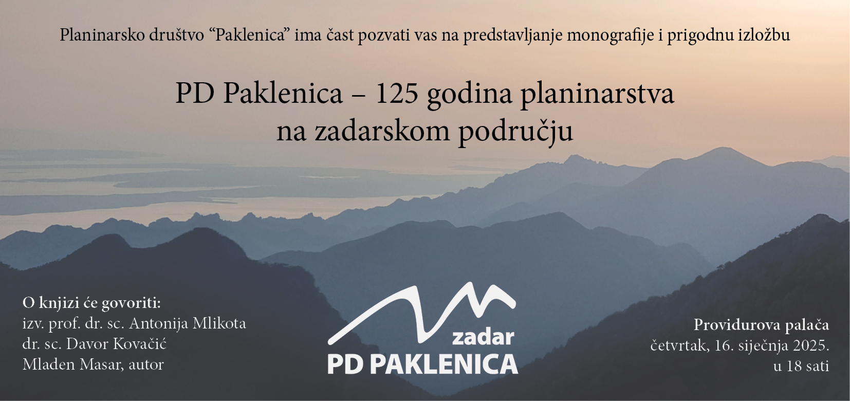 -Pridružite nam se u četvrtak, 16. siječnja 2025. u 18:00 u atriju Providurove palače u Zadru i proslavite s nama ovu važnu obljetnicu!- poručili su iz PD Paklenica.