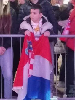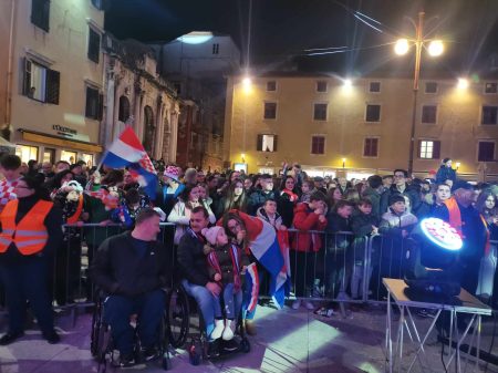 Okupio se velik broj ljudi, a prije dolaska rukometaša okupljeni su glasno pjevali pjesmu Dalmacijo Alena Nižetića i Tutti Frutti Banda.
