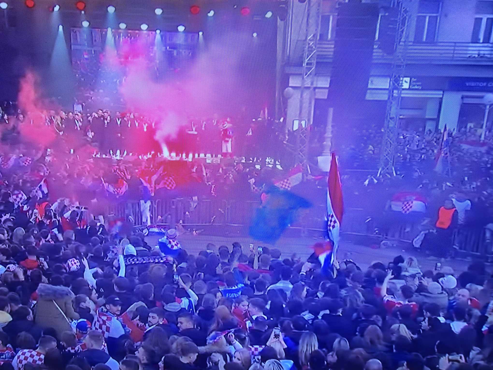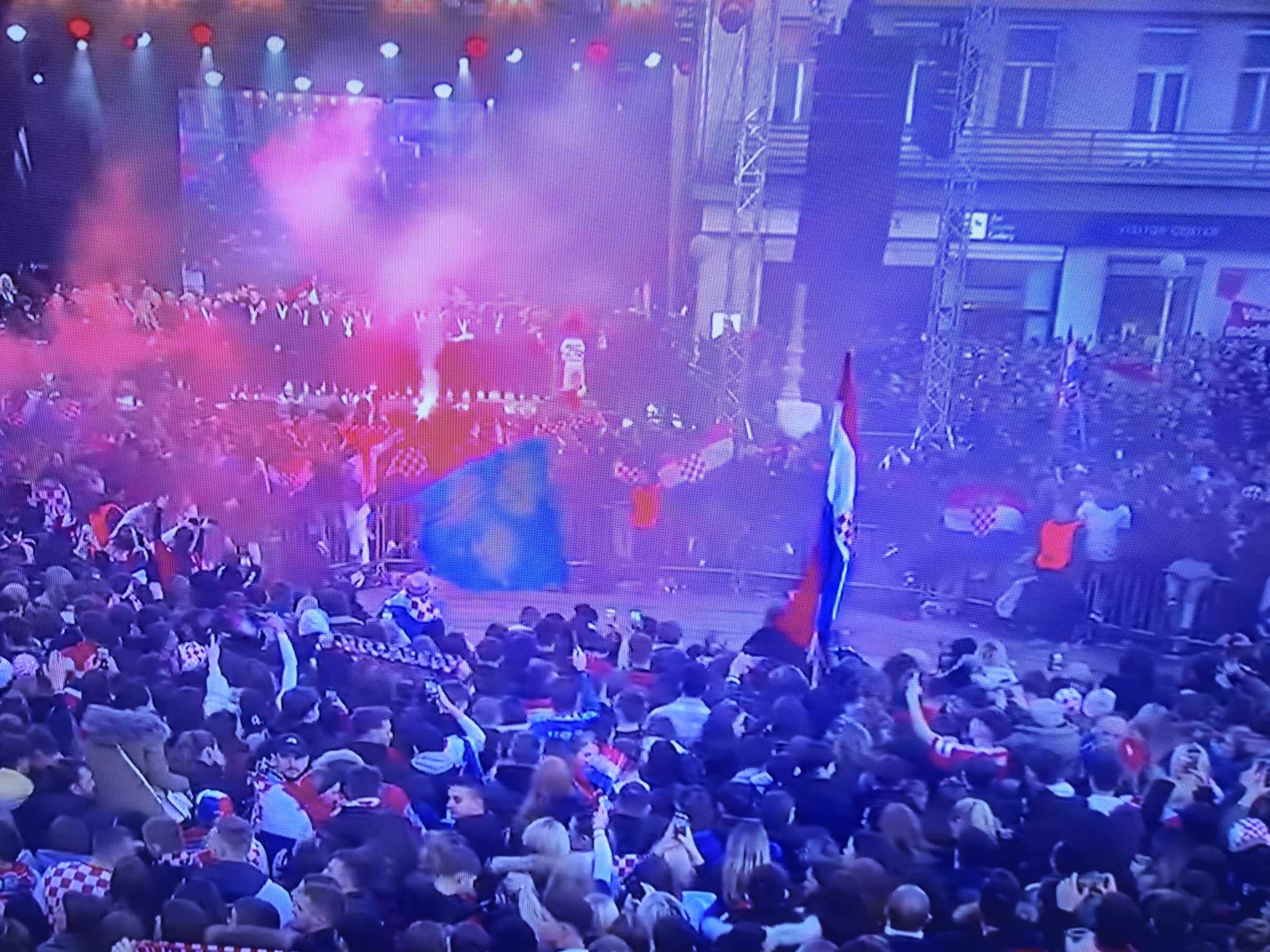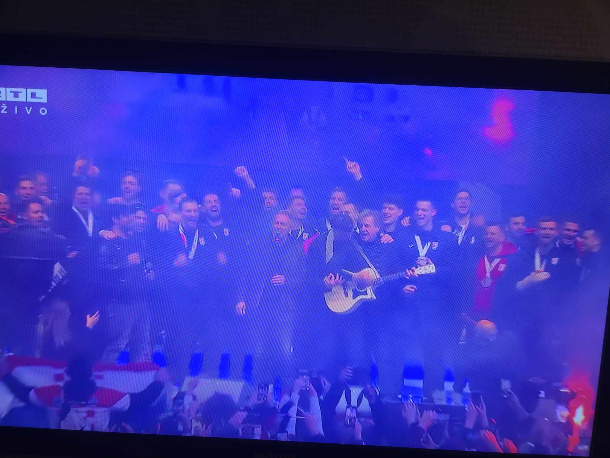 Kao što su navijači željeli, stigao je Thompson, na što je zavladala potpuna euforija. Za početak je zapjevao “Ako ne znaš što je bilo”, svojevrsnu himnu ove generacije reprezentativaca. Nakon što je odradio set, otišao je, ali se vratio i još jednom otpjevao “Ako ne znaš što je bilo” i dodatno podigao euforiju…