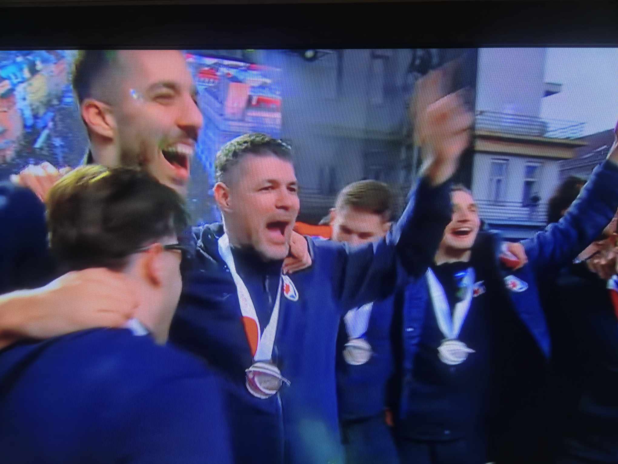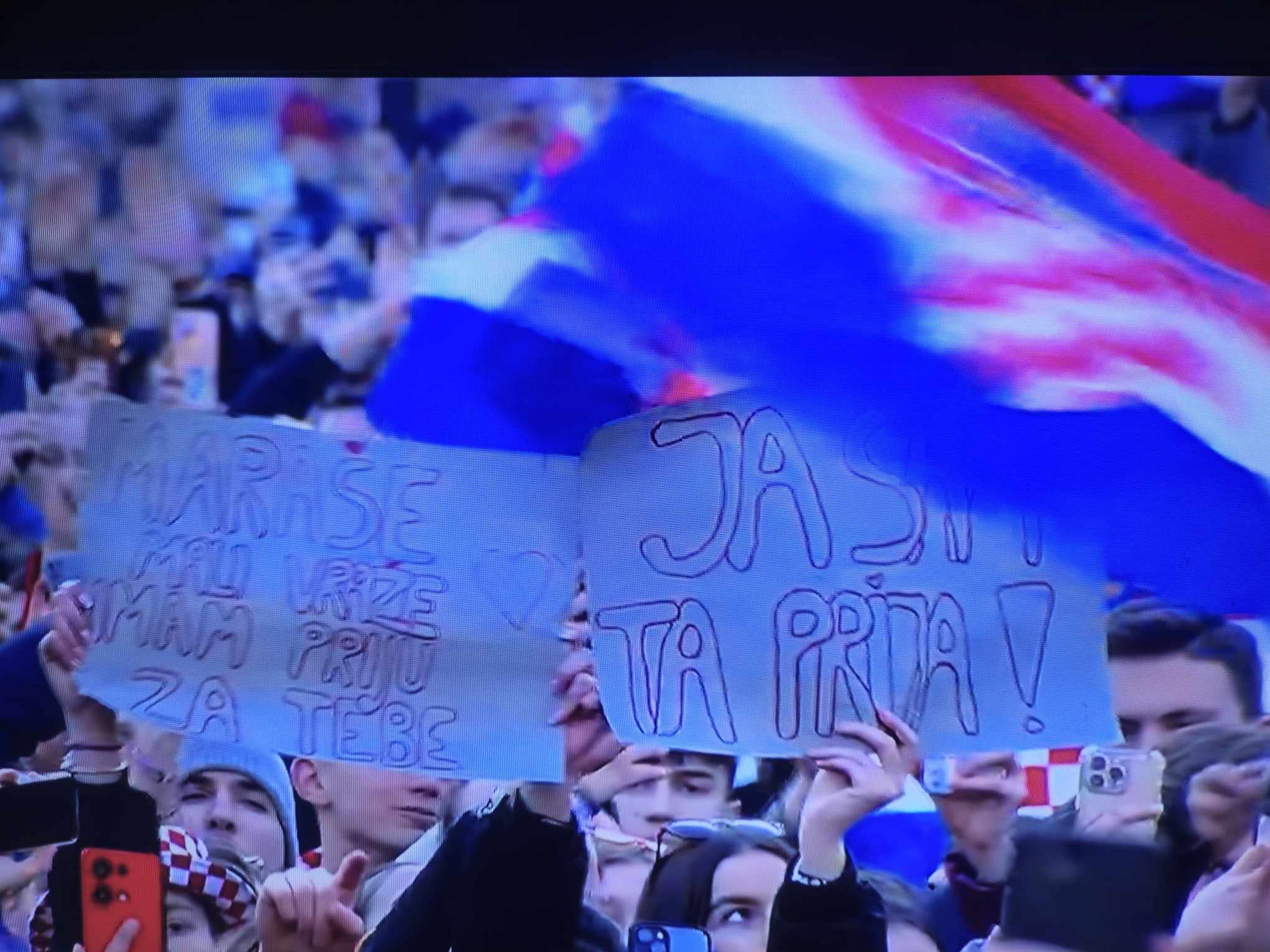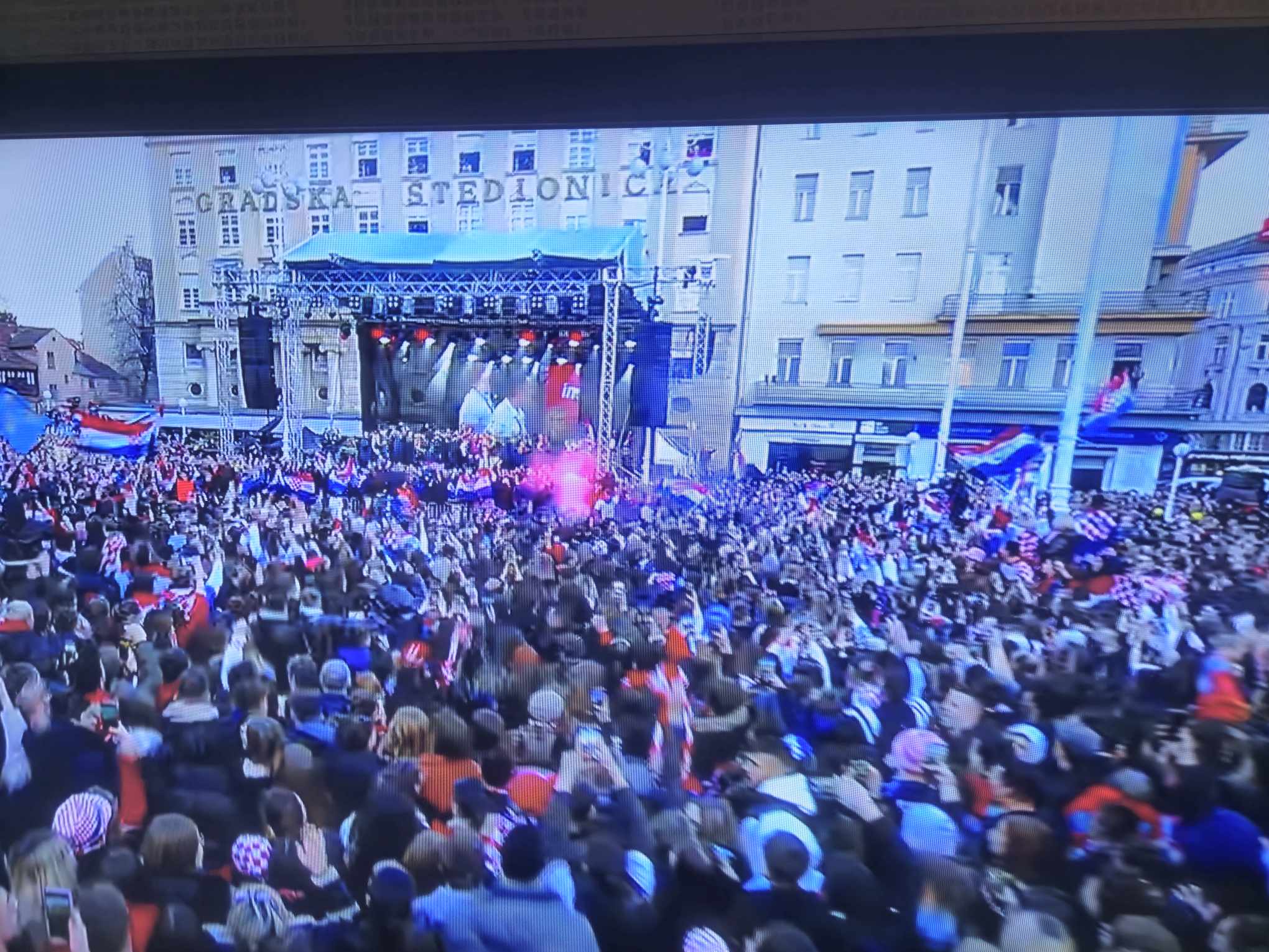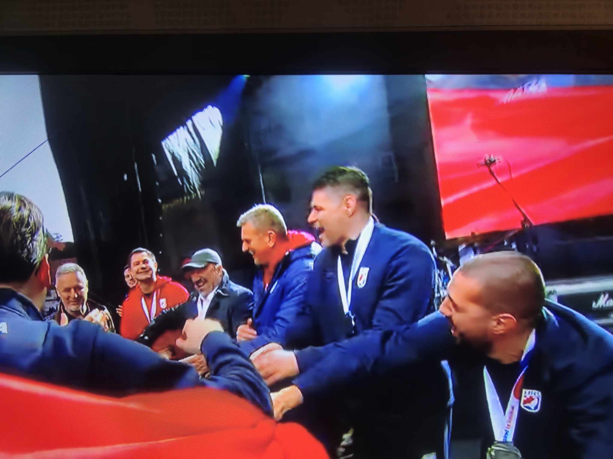 Kao što su navijači željeli, stigao je Thompson, na što je zavladala potpuna euforija. Za početak je zapjevao “Ako ne znaš što je bilo”, svojevrsnu himnu ove generacije reprezentativaca. Nakon što je odradio set, otišao je, ali se vratio i još jednom otpjevao “Ako ne znaš što je bilo” i dodatno podigao euforiju…