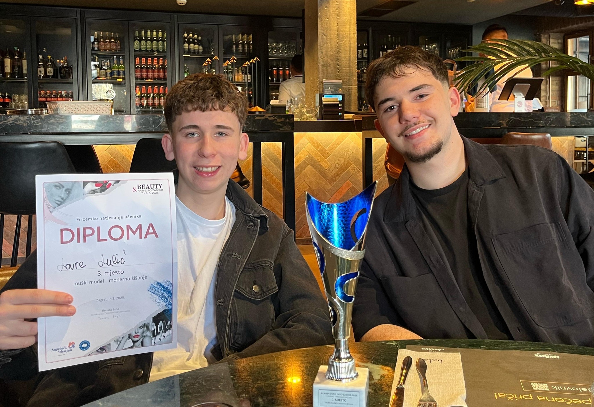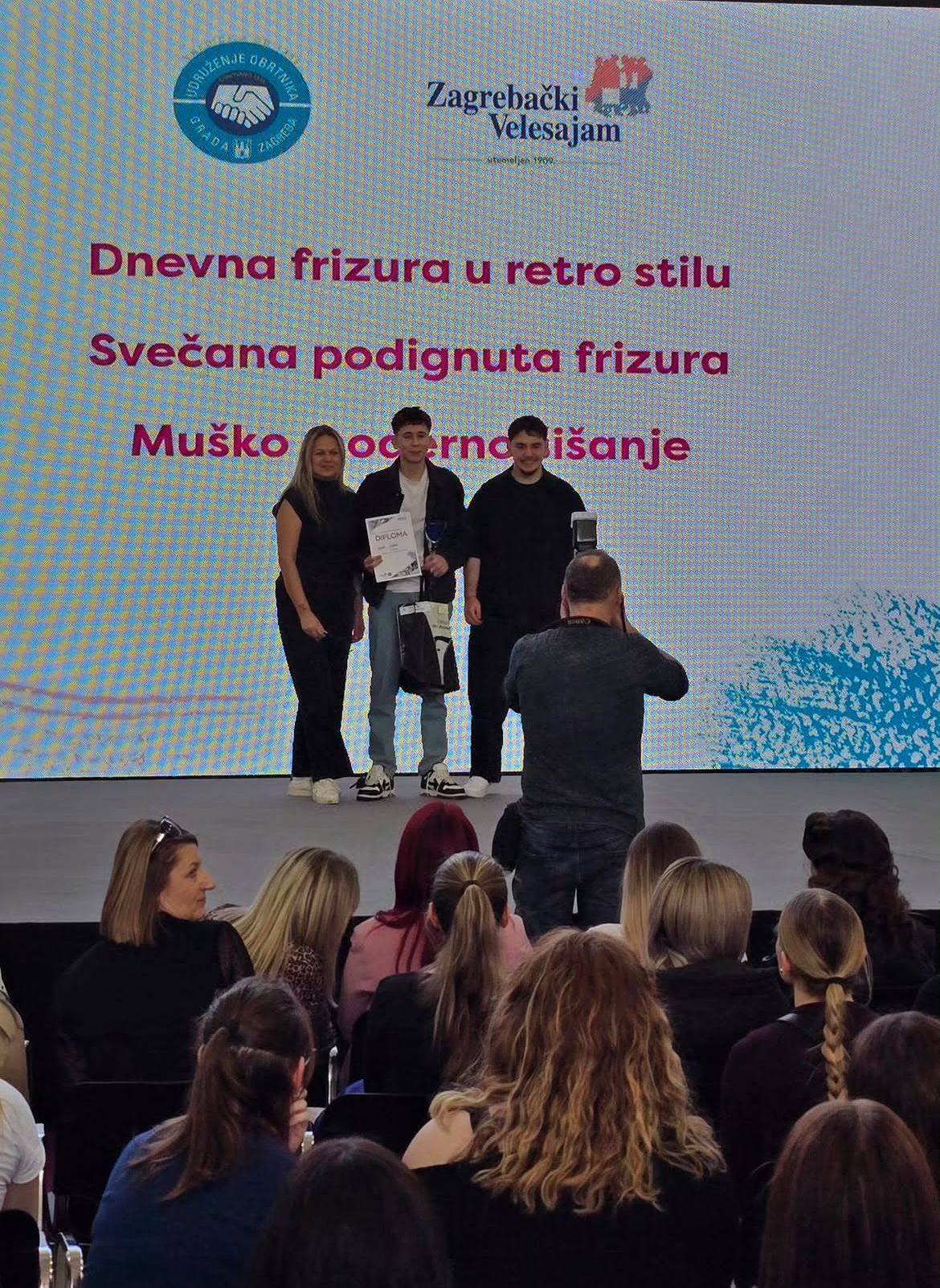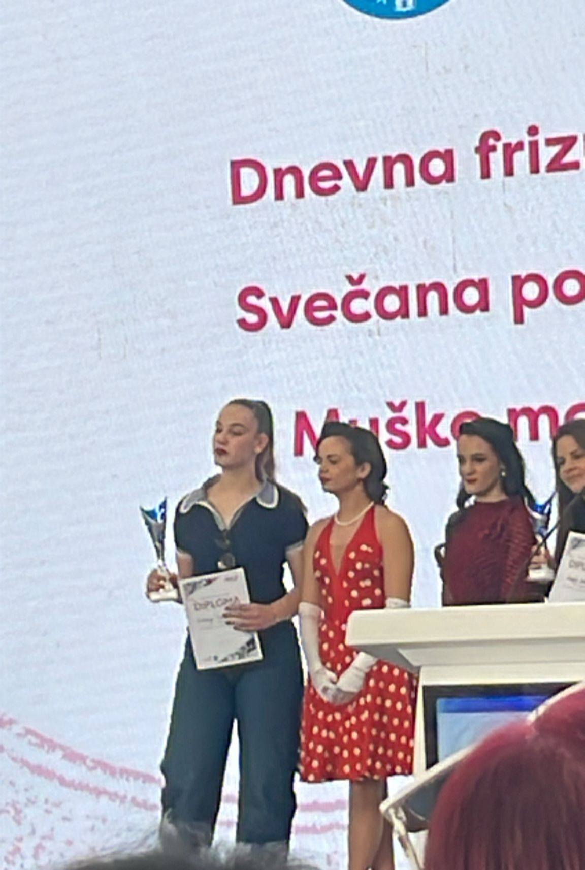 -Naša Antonija osvojila je prvo mjesto za žensku dnevnu frizuru u retro stilu, a Lovre treće mjesto za mušku modernu frizuru. Moramo spomenuti i našeg učenika Davida Lleshaja koji je Lovri bio model i uz mamu Sanju najveća moralna podrška. Mladi frizerski, make up i nail majstori dobili su priliku pokazati svoje umijeće, a naši učenici su i ove godine nastavili tradiciju osvajanja prvih mjesta na ovakvim natjecanjima. Bravo Antonija & Lovre!- poručili su i izvijestili iz Ulice Ivana Mažuranića 32.