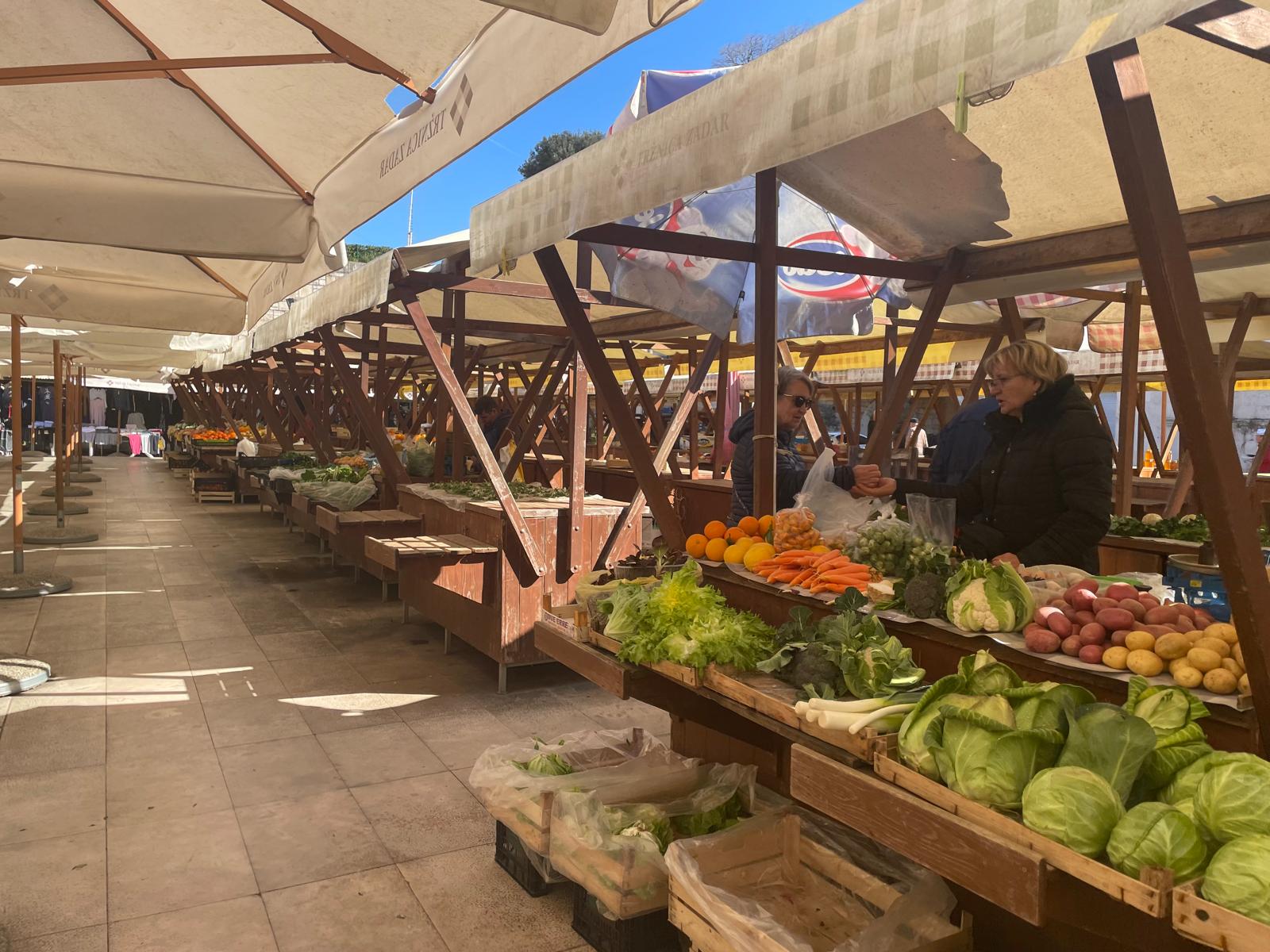 Nakon dva tjedna uporne kiše, napokon se iznad Zadra razvedrilo. Sunce je jučer, a evo i danas već za ranoga jutra, ugrijalo kamen i ljude, a zadarska gradska pijaca, iako ne tako krcata kao u sezoni, opet je oživjela, ne gužvom, nego pričom i smijehom.