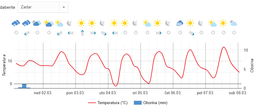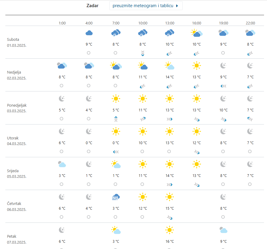 Evo odmah ispod teksta detaljna tjadna prognoza za Zadar! (P.L.)