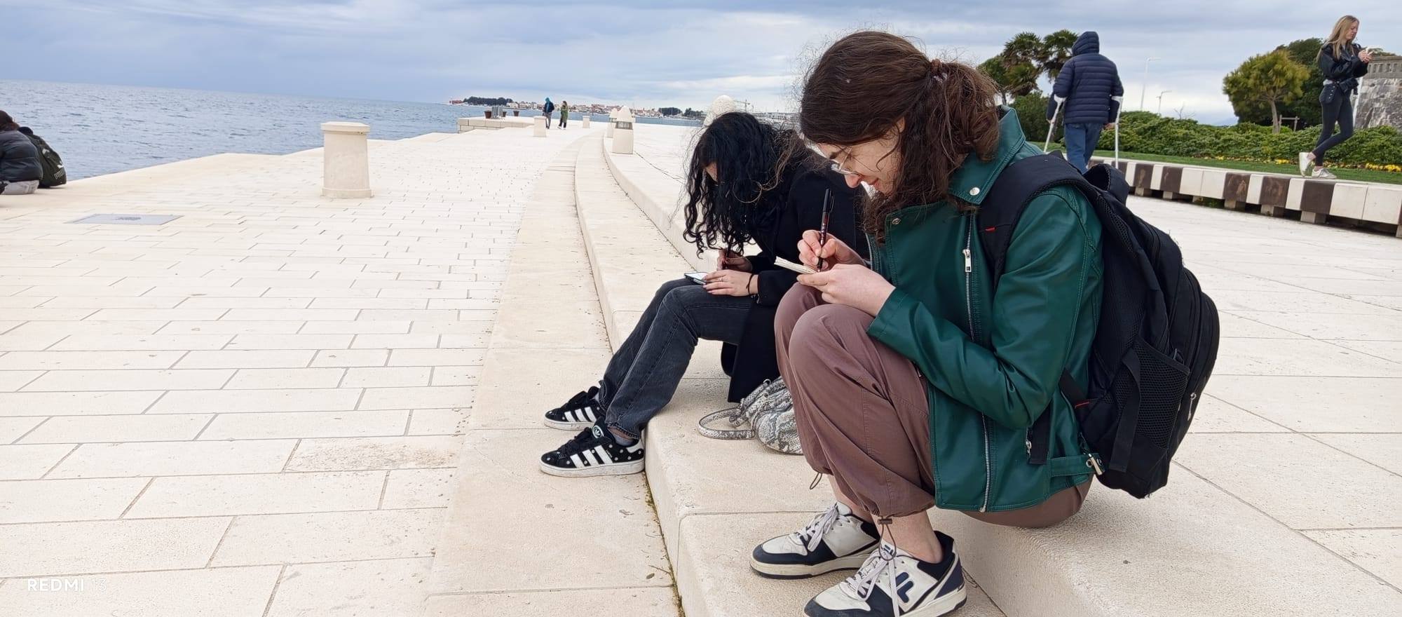-Jutros su nastavu Crtanja i slikanja provele istražujući grad u crtačkom lovu na teksture i strukture, pod budnim okom prof. Nikoline Ćuk!- izijestila nas je kontinuirano u jednom i vesela i informativna i edukatina fb stranica Škole primijenjene umjetnosti i dizajna Zadar.