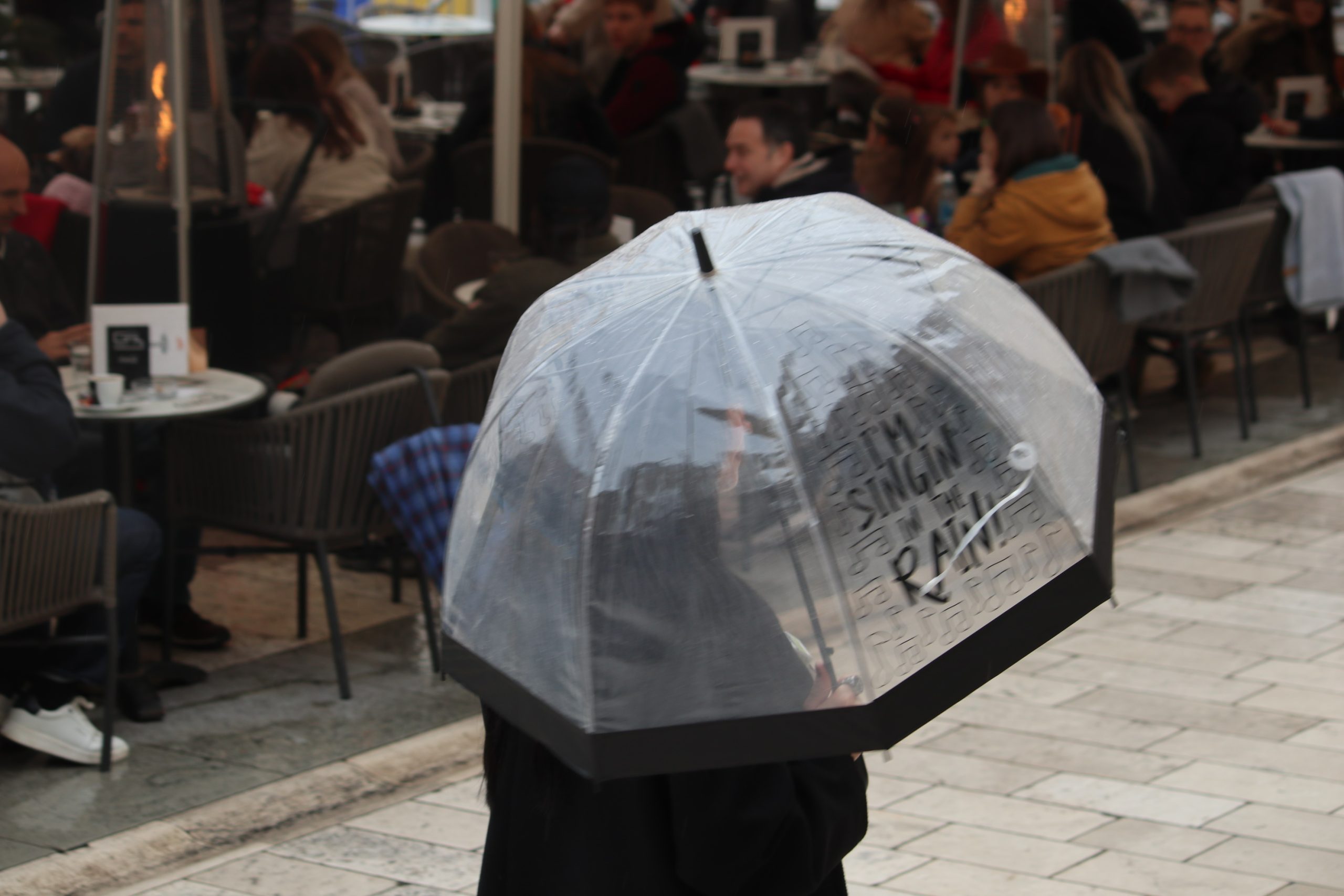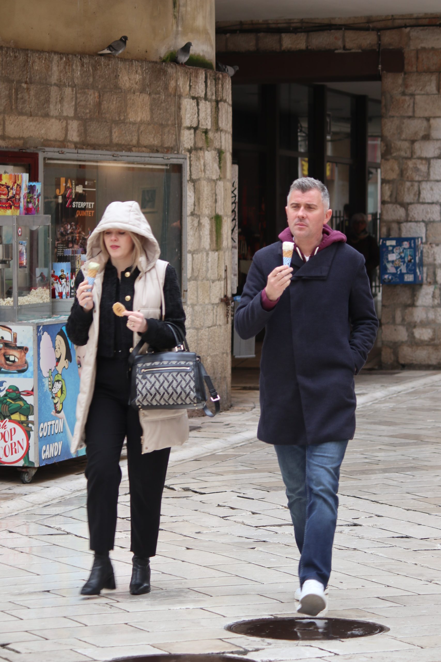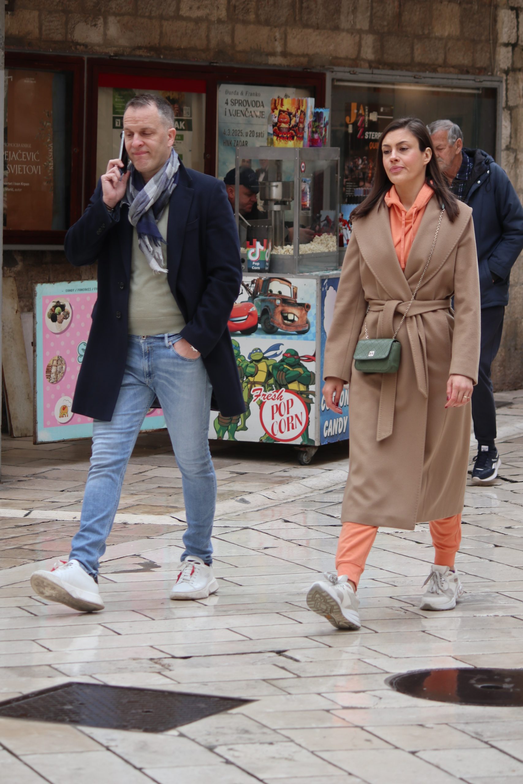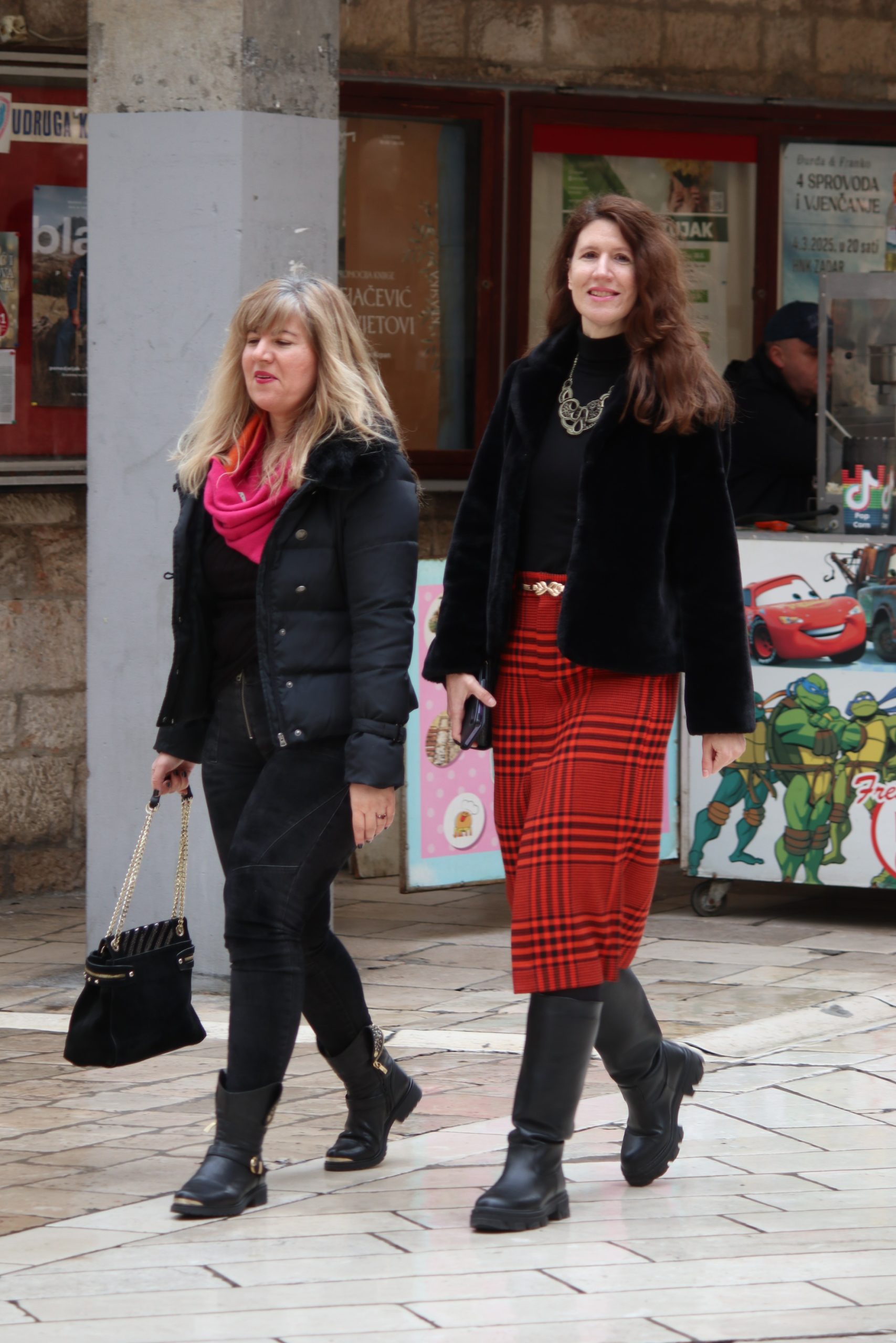 U ćakuli i komentarima o Amerima i Rusima, pride Ukrajincima, Trumpu i Zelenskom, Jupi i Gattuzu, kiši, buri, izborima i maškarama, punici, svekrvi, maloj dici s malim i velikoj s velikim brigama, i tako to u sto puta gori-doli Kolona-Forum-Kolona, hodalo se sve više i više u jaknama i tenisicama, tamnih i svijetlih tonova, ljepši spol s torbicama i boršama, muški s lumbrelama.