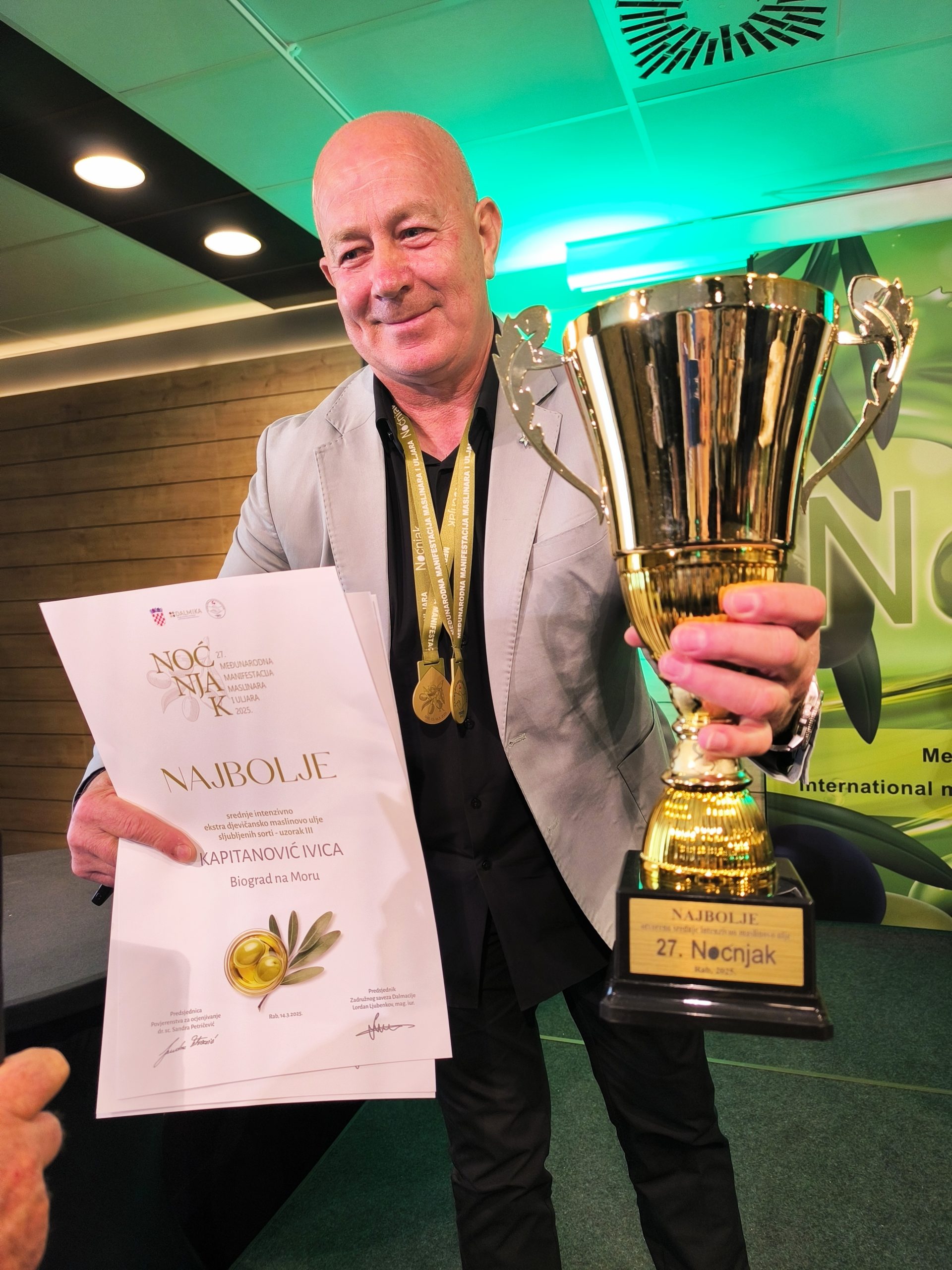 Od svih zadarskih županijskih maslinara najviše razloga za zadovoljstvo ima Ivica Kapitanović iz Biograda na Moru. Za svoja višesortna ekstra djevičanska maslinova ulja on je na međunarodnoj manifestaciji Noćnjak koja se održava u gradu Rabu na istoimenom otoku osvojio dvije zlatne medalje I titulu šampiona za najbolje intenzivno ulje od sljubljenih sorti.