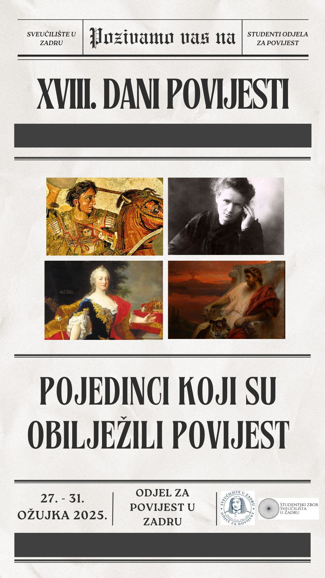 XVIII. DANI POVIJESTI U ZADRU Izlaganja i radionice s temom “Pojedinci koji su obilježili povijest”