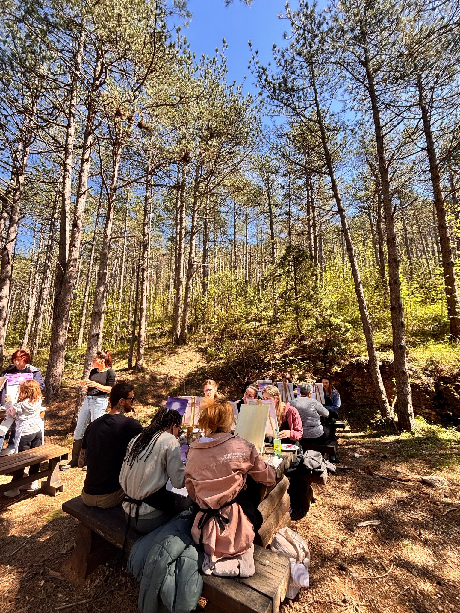 Slikanje u prirodi održano je u suradnji s Udrugom Re-kreativci. Sunčano vrijeme, lagani povjetarac te cvrkut ptica ‘omogućili su nam’, dodaju, ‘da se opustimo i oslobodimo svoju kreativnost. Vođeni smjernicama akademskog slikara Mirka Marušića probudili smo skrivenu kreativnost u sudionicima radionice te platna oslikali šumskim motivima’.