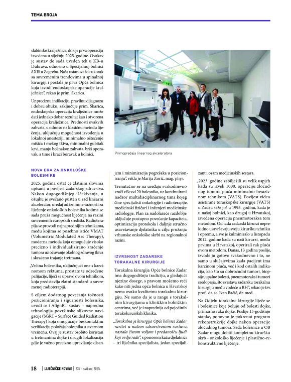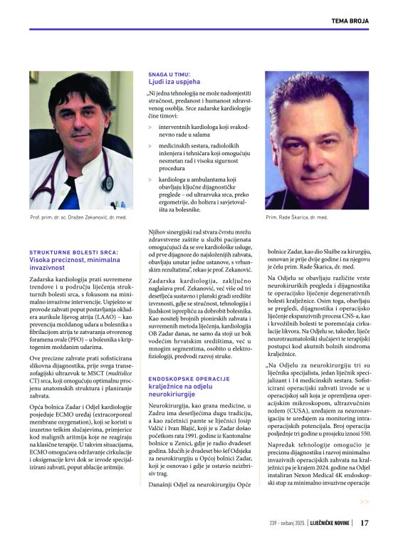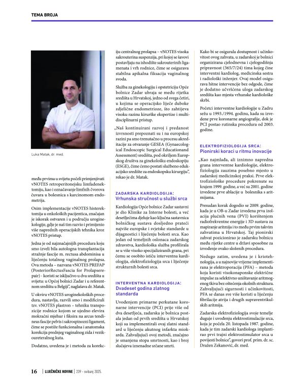 Zadarska kardiologija kao vrhunska stručnost u službi srca, dosezi torakalnih i neurokiruga, uspjesi Odjela za urologiju i Službe za ginekologiju i opstetriciju i početak djelatnosti radioterapije, sasvim su zasluženo dobili medijski prostor kroz novinske retke, ističu iz OB Zadar.