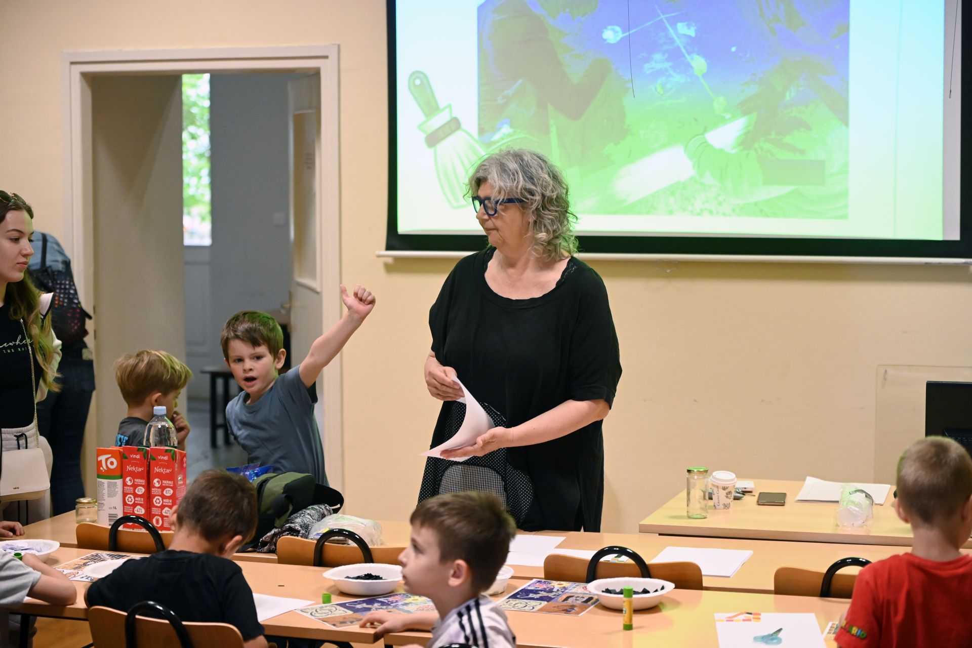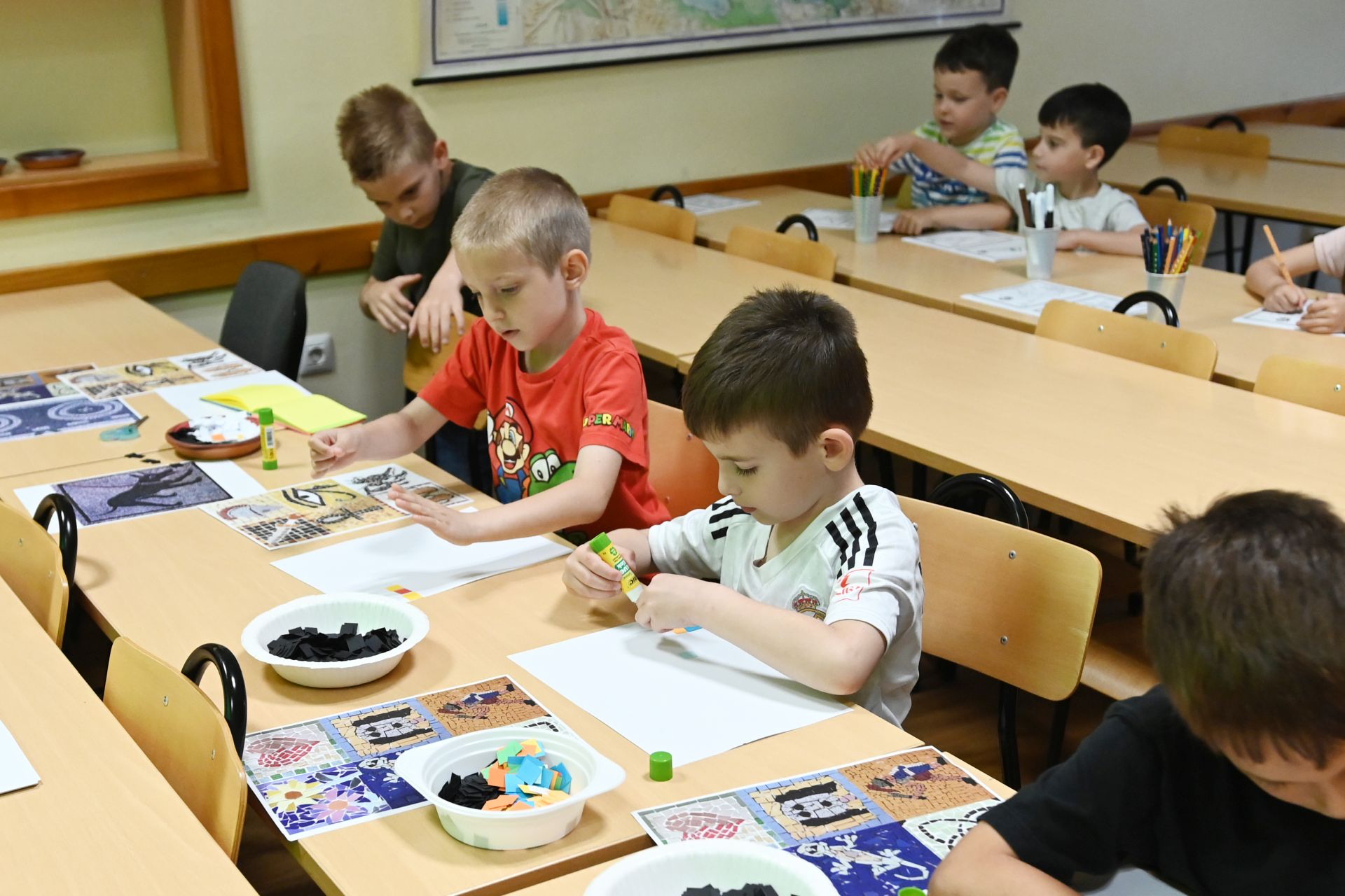 Također su sudjelovali u likovnoj radionici „Mozaik”, na kojoj su stvarali likovne radove na temu otkrivenih mozaika, bojali su bojanku „Božanstva” i slagali arheološke slojeve u staklenke. Nakon što su prošli sve radionice dobili su zaslužene diplome za male arheologe.