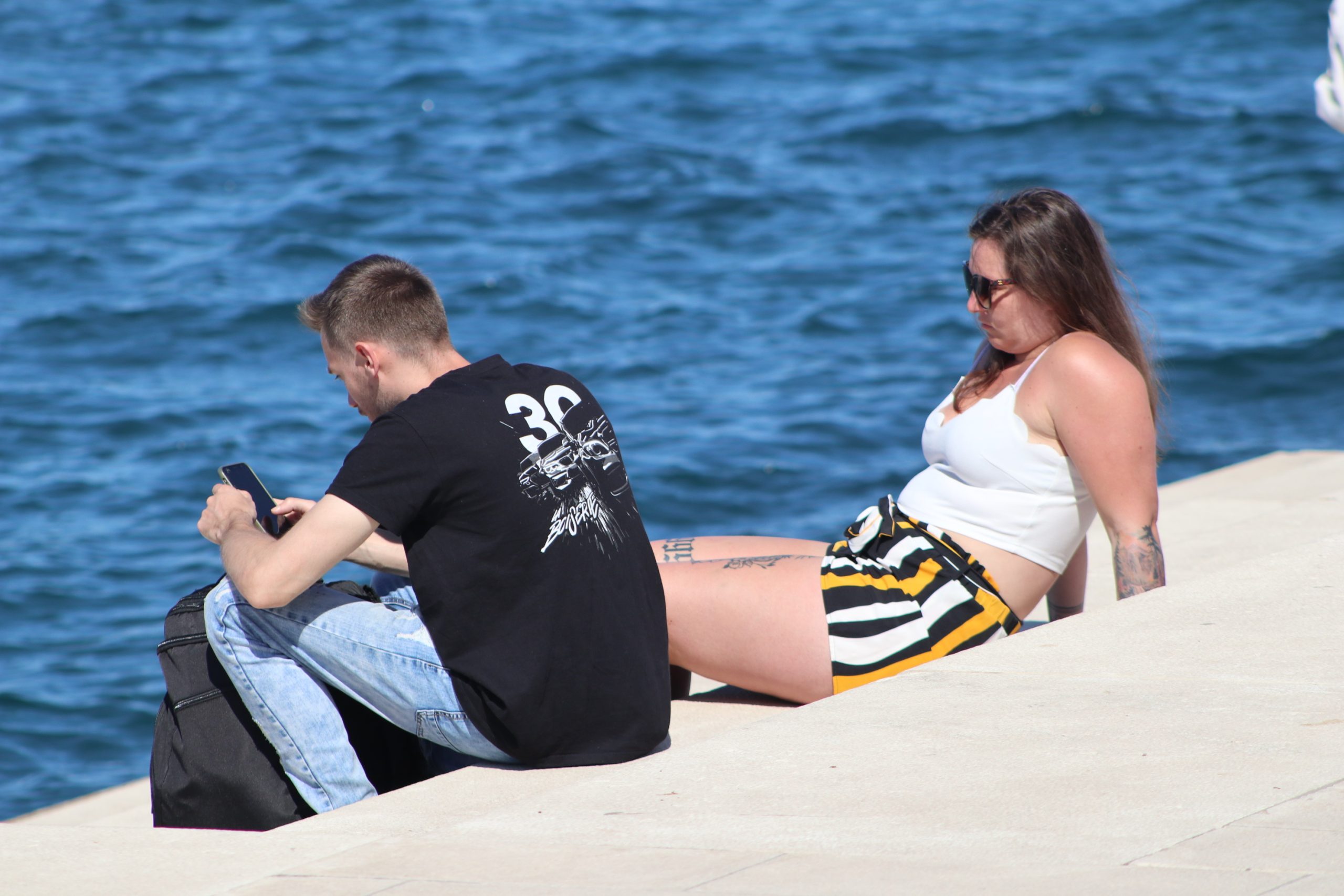 Riva – puna k’o šipak. Na Forumu se sunčaju, leže na kamenim pločama poput guštera, a makijati klize niz grla pod tamnim naočalama. Ljube se mladi, guraju se kolica s dijecon, šeću se psi i priče u ćakuli, a mobiteli griju uho dok se u četiri oka ili više njih analizira sve – od novog Pape do stanja u Hajduku i košarci s Višnjika.