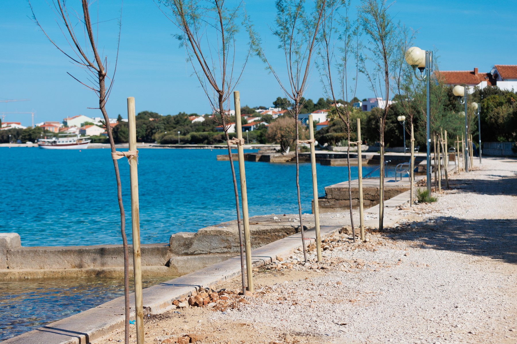 Sadnja je započela u području ispod hotela Petrčane, gdje je posađeno 7 stabala murve (lat. Morus alba Platanifolia Fruitless), a nastavljena je prema zapadnom dijelu naselja s dodatnih 27 stabala tamarisa (lat. Tamarix dalmatica), svih visine najmanje 180 cm.