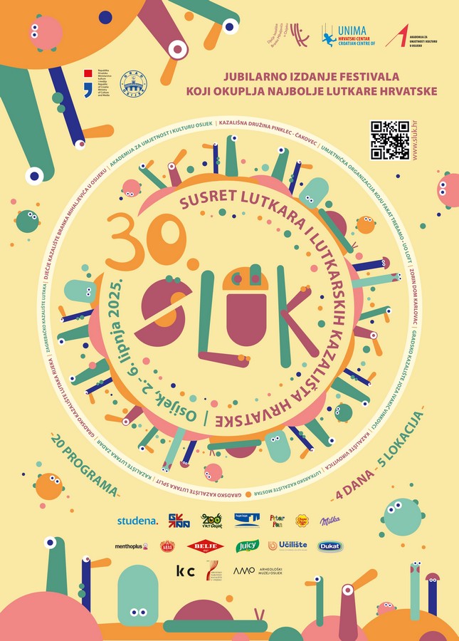 SLUK je najvažniji hrvatski kazališni festival posvećen isključivo lutkarskoj umjetnosti, a ove godine okuplja deset predstava u natjecateljskom programu te dvije u popratnom programu. Uz bogat repertoar predstava, posjetitelje očekuju i dvije zanimljive izložbe: “Od konca do zvonca”, u organizaciji Akademije za umjetnost i kulturu, te velika retrospektivna izložba “Susret lutaka u Osijeku”, koja donosi maštovite scenografije i lutke iz povijesti SLUK-a.