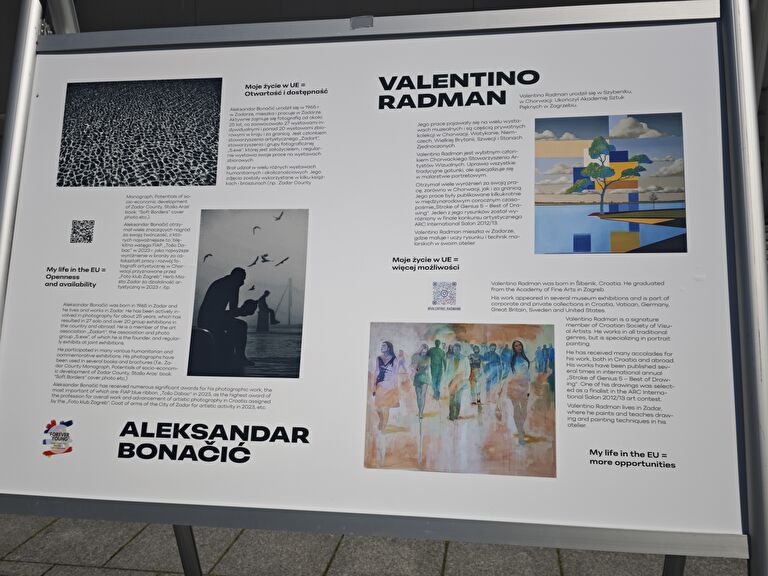 Središnja točka događanja bila je svečano otvaranje izložbe pod nazivom “Naš život u EU”, na kojoj su izložena umjetnička djela odabranih umjetnika iz grada domaćina i gradova partnera. Umjetnici Aleksandar Bonačić i Valentino Radman, svojim djelima predstavili su Zadar.
