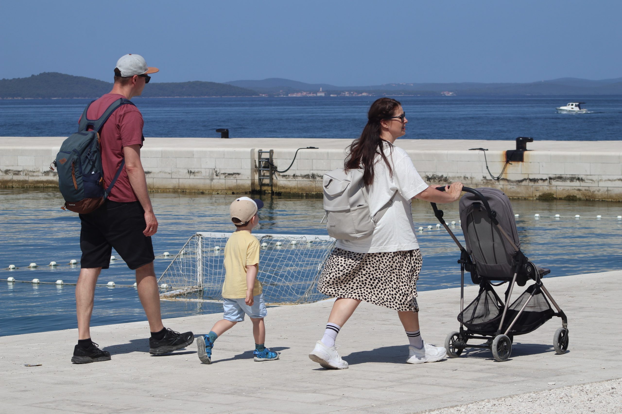 Na poluotoku pod suncobranima jedva se nalazi slobodno mjesto, ali zato na rivi i Forumu vlada lagana, ljetna neopterećenost. Morski povjetarac rijetko kad je dragocjeniji – pogotovo onima koji su odlučili stati kod Morskih orgulja, gdje mnogi toćaju noge, sjede na rubu i promatraju beskraj plavoga. Na pločnicima sjene gotovo i nema, ali ulice su svejedno pune – Zadar gori, ali ne posustaje, naš grad.