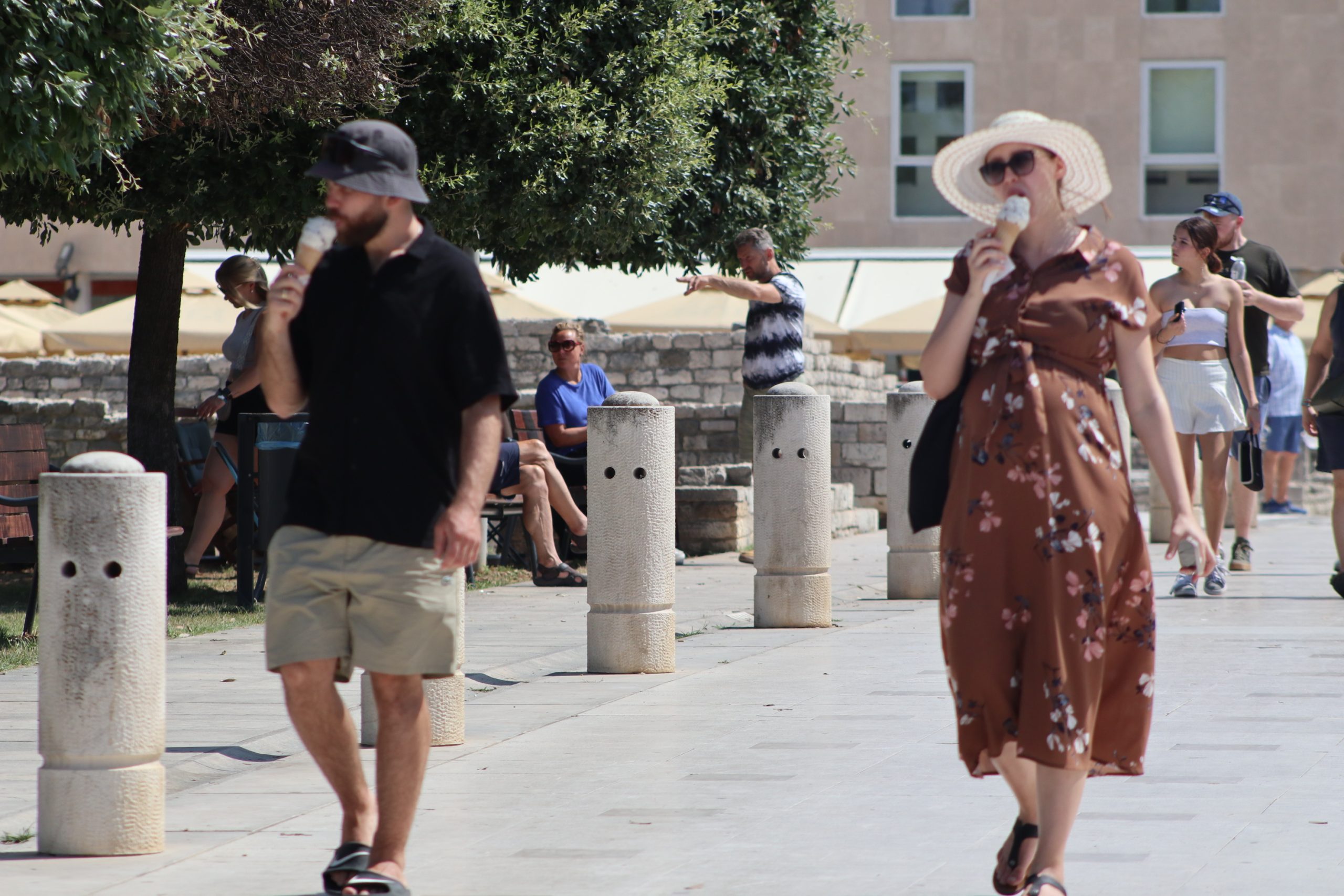 Grad se već iz ranih jutarnjih sati puni. Dolaze Zadranke i Zadrani – dotjerani, ljetno obučeni, u šetnji, u điru, na kavi. Turisti iz svih krajeva svijeta miješaju se s domaćima, a jezici se preklapaju jednako kao i boje haljinica, topića i minića koje se lepršaju ulicama i kaletama. Sandale kucaju o kameni pločnik, šeširi štite obraze, u rukama bočice vode i nezaobilazni sladoled – jer i to je dio rituala.