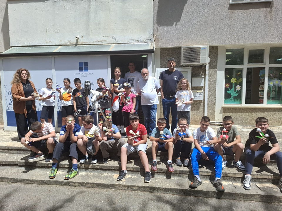 Nakon toga, uz pomoć Dalibora Bučića iz Astronomske udruge Zadar, gledali su kroz teleskop prateći promjene Sunčevih pjega. Za kraj su simbolično očistili knjižnični park…