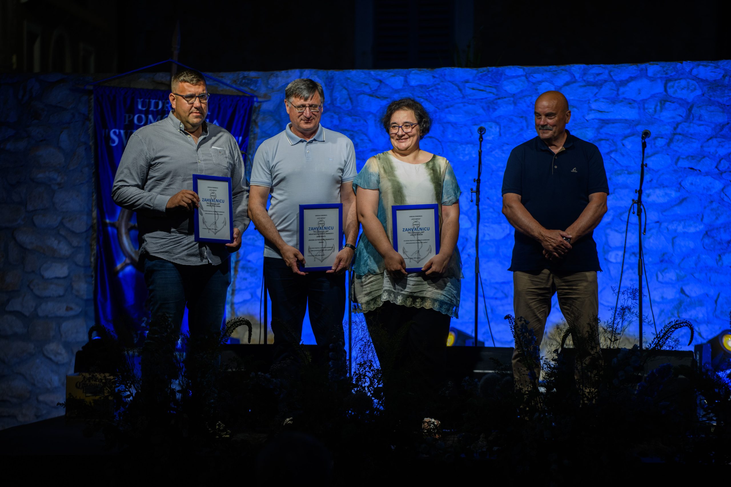 U večernjim satima na Trgu Kolište održana je svečana sjednica Udruge pomoraca Sveti Nikola, na kojoj su dodijeljena priznanja zaslužnim pojedincima – izv. prof. dr. sc. Luki Grbiću, pročelniku Pomorskog odjela Sveučilišta u Zadru, doc. dr. sc. Ljiljani Peričin iz Zadarske županije te prof. dr. sc. Tadi Oršoliću iz HAZU-a Zadar. Događaj su svojim prisustvom podržali i Krešimir Laštro, izaslanik župana i pročelnik Upravnog odjela za pomorsko dobro, more i promet Zadarske županije, Marko Novaselić, član Uprave Jadrolinije i Neven Melvan iz Sindikata pomoraca Hrvatske.